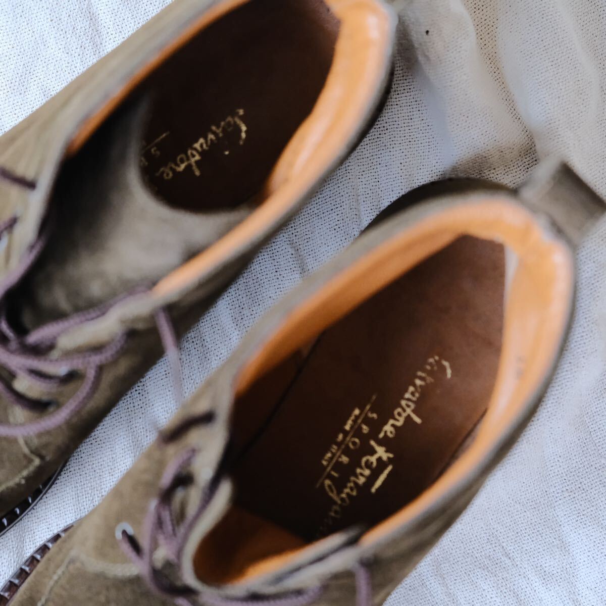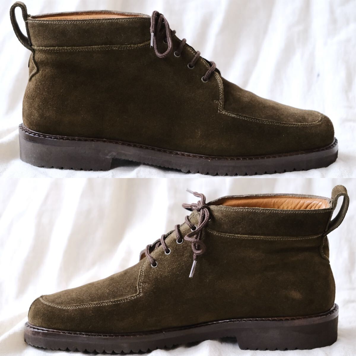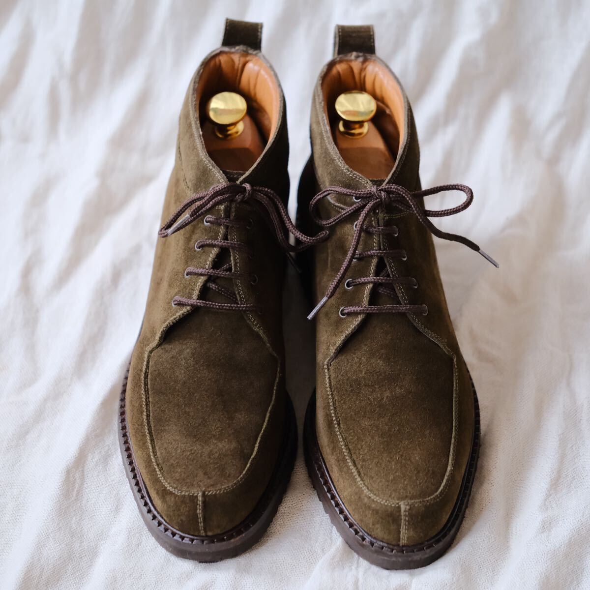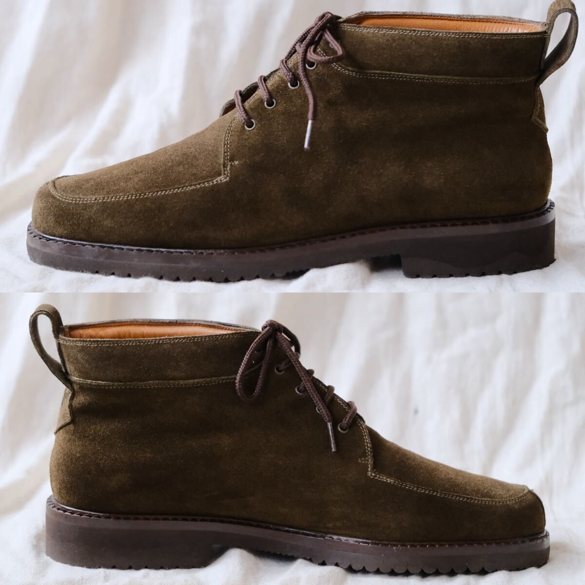こちらはモスカーキのスウェードレザーをアッパーに用いた5アイレットのショートブーツ。