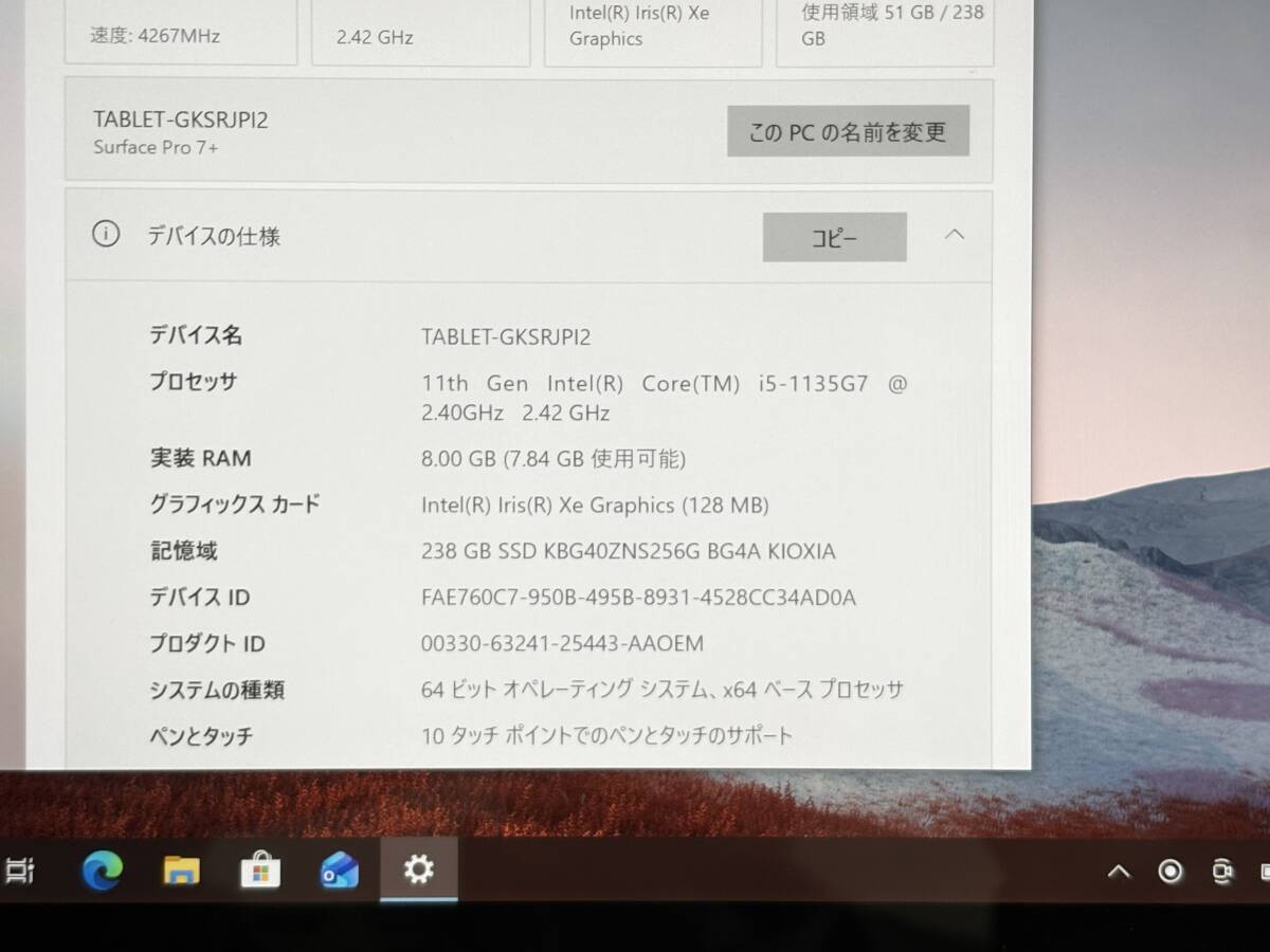 【バッテリー良好】Microsoft Surface Pro 7+ model:1960『Core i5(1135G7) 2.4Ghz/RAM:8GB/SSD:256GB』12.3インチ Wi-Fi Win10 動作品