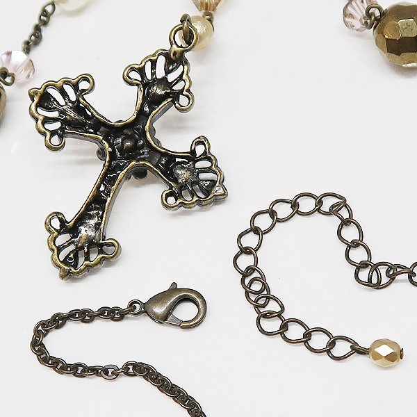 DKG★送料無料★ ヴィンテージ フェイクパール クロス 十字架 デザイン マルチ カラーストーン アンティーク レトロ ネックレス 25