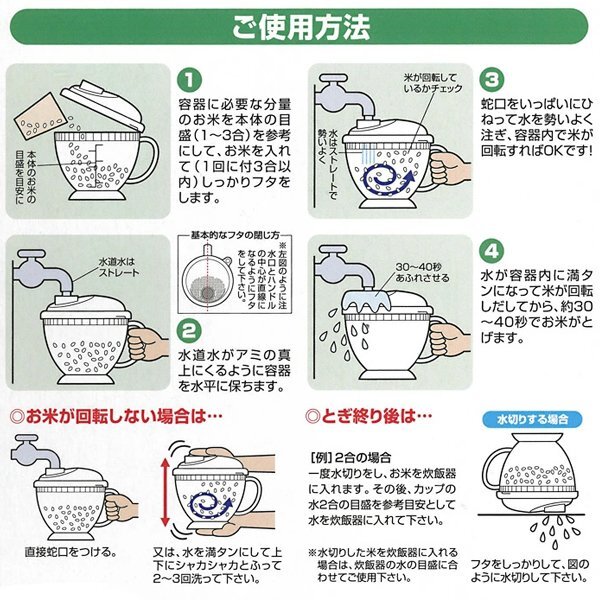 スピード米とぎ器 水流式 1~3合 つめたく米 水に触れない 日本製 洗米 キッチン 調理器具 お米 洗う 冷たい時期 送料無料- 60N◇ 米こさん