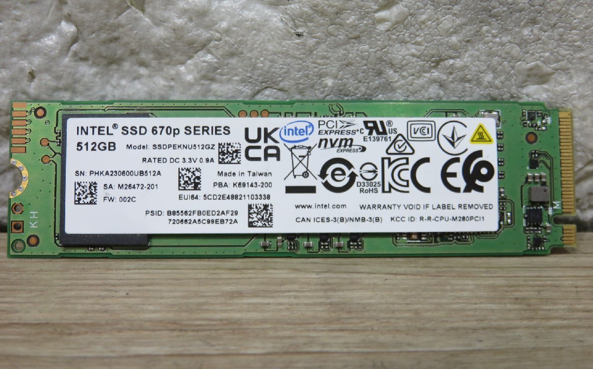 ★≪中古品≫SSD NVMe規格 M.2 intel 670p 512G★