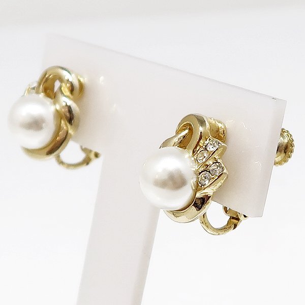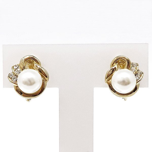 DKG★送料無料★ ヴィンテージ フェイクパール ラインストーン アンティーク レトロ イヤリング 145