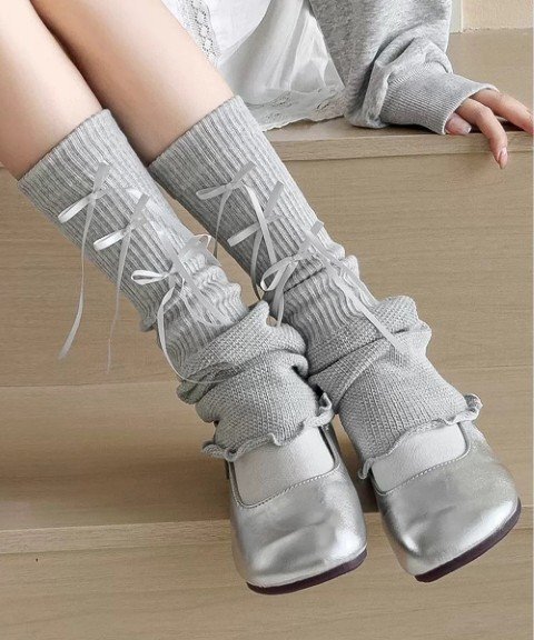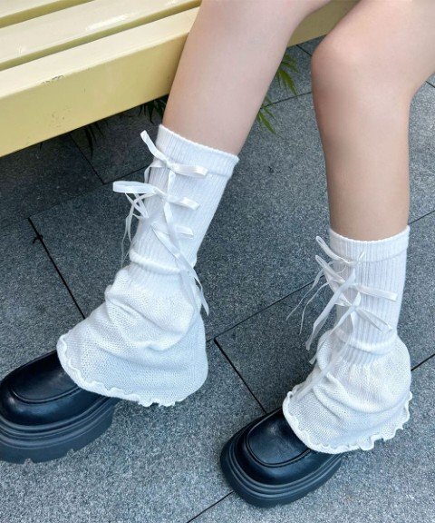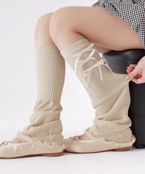 リボン付きの裾フレアデザインが可愛らしいレッグウォーマー。