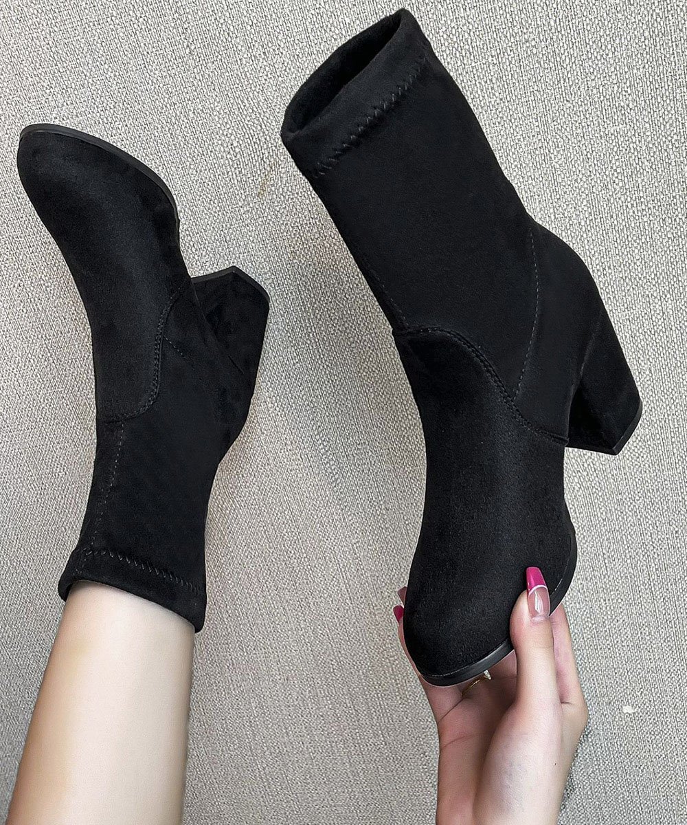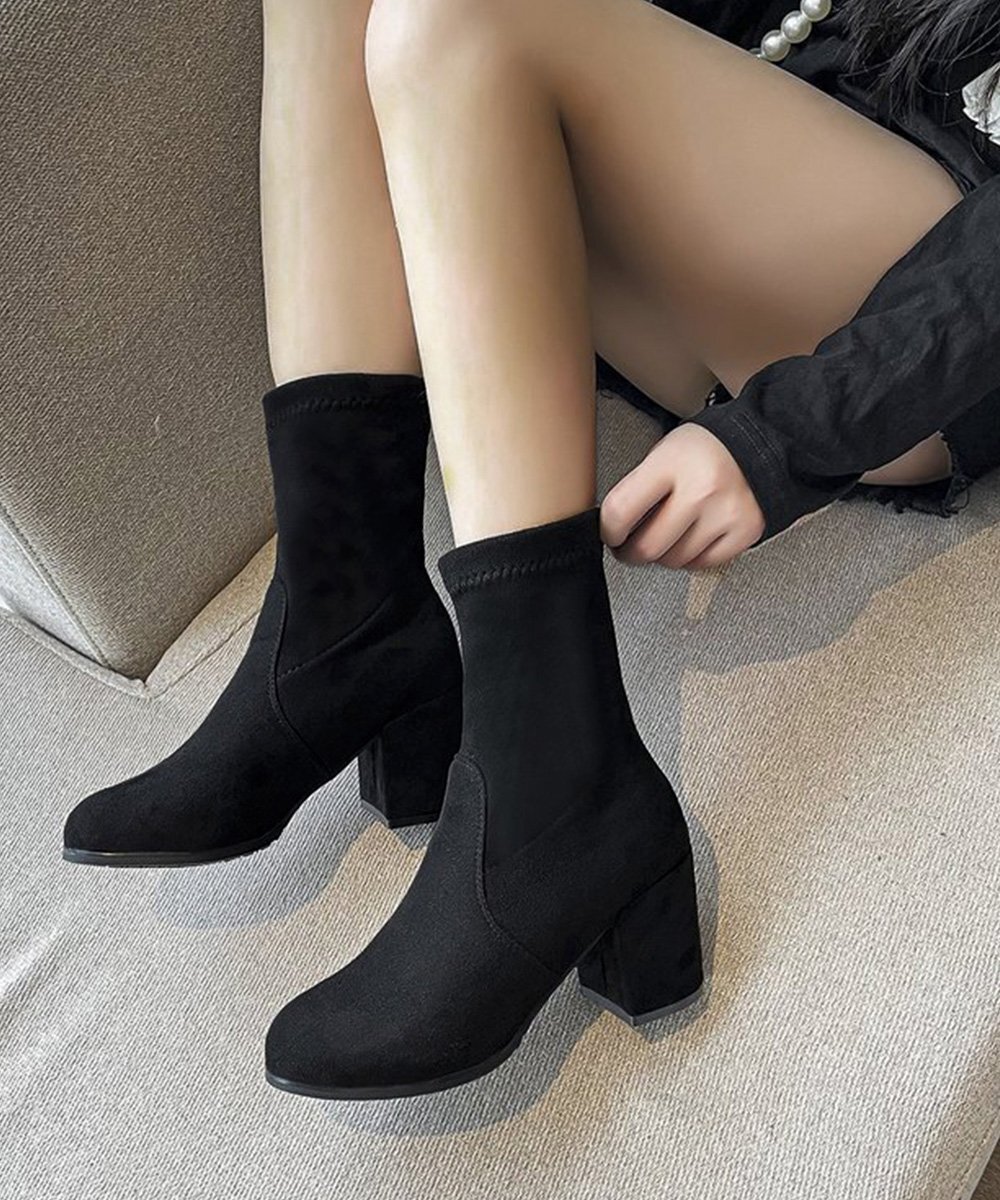 あなたの足元を一層魅力的に演出するチャンキーヒールショートブーツ
