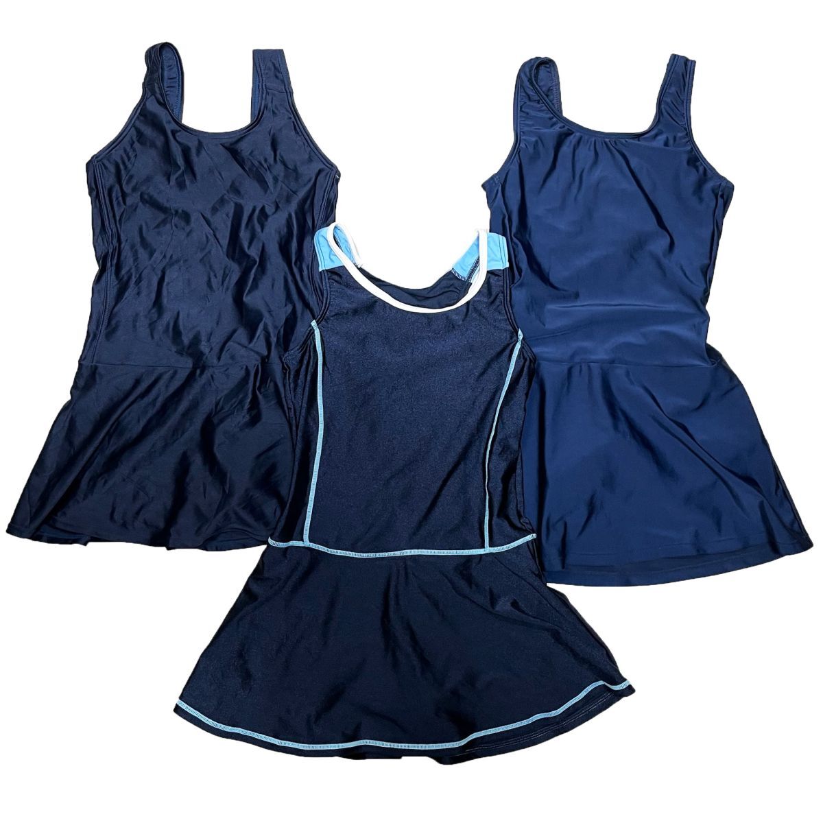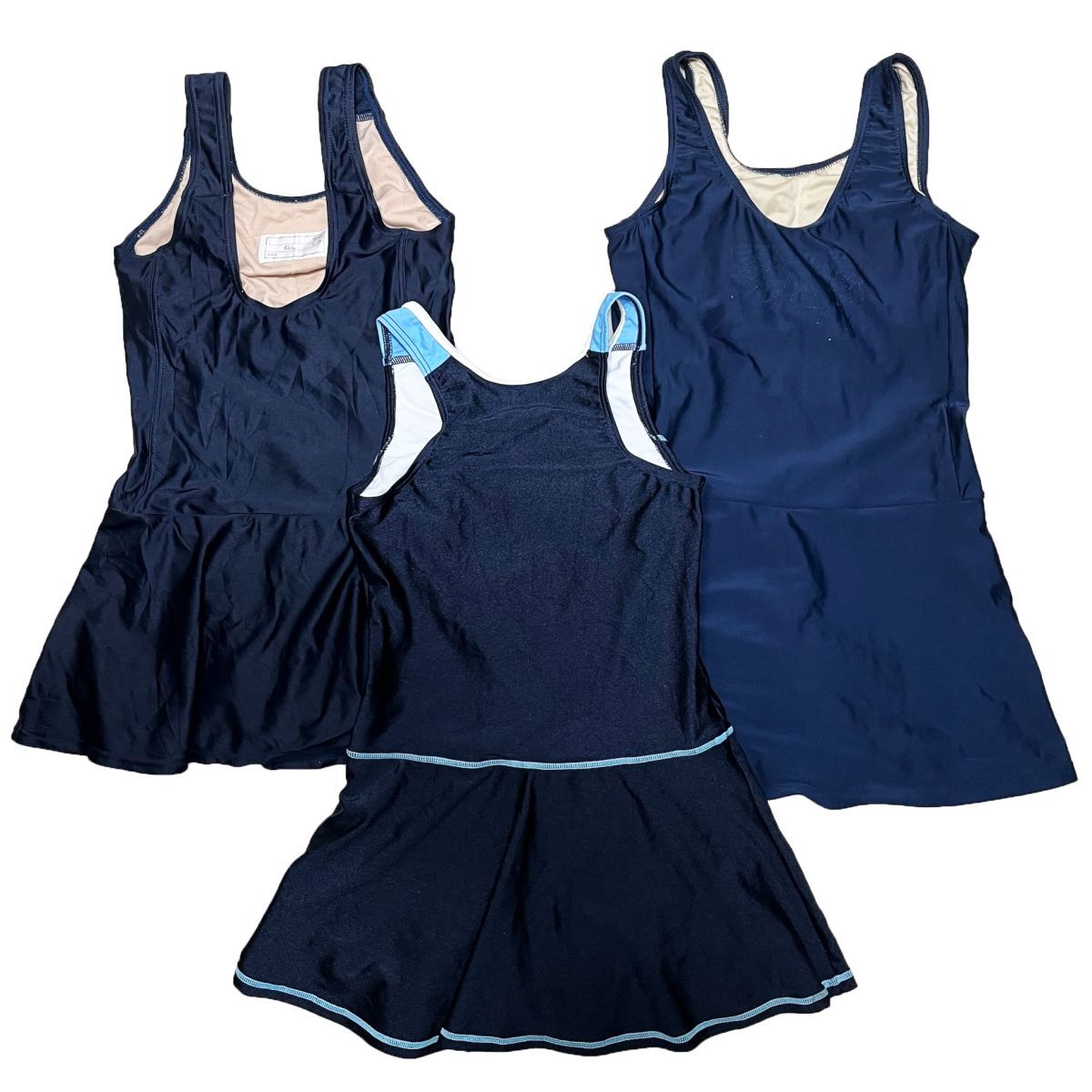 16【整理品リサイクル】女子競泳水着3枚セット(150・160(L程度))★アイルズ関西ファッション日本被服工業★スカート★光沢濃紺