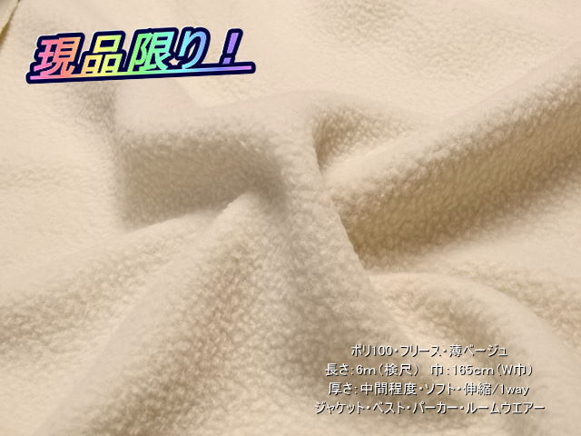 商品は、ポリ100・フリース・薄ベージュでございます。