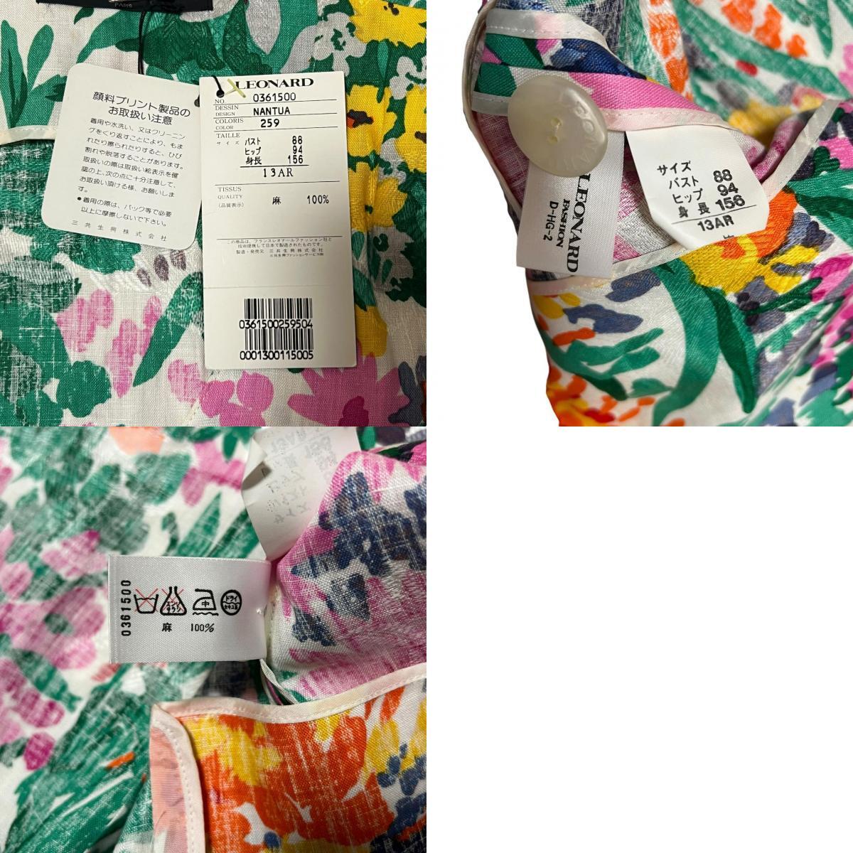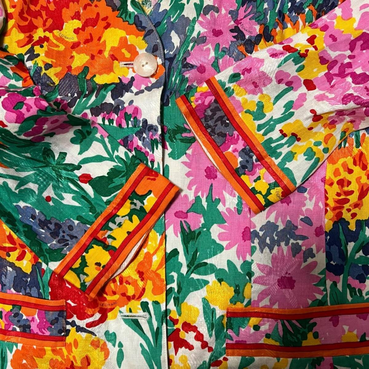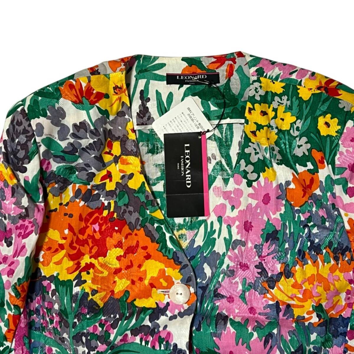 | LEONARD レオナール 花柄 ノーカラージャケット 13AR 肩パッド レディース 未使用 タグ付 |