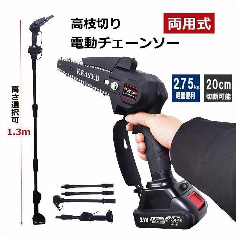 高枝切り 電動チェーンソー コードレス 角度調節可能 20cm切断可能 両用式 軽量 女性用 着脱式ポール 130cm zchw0117