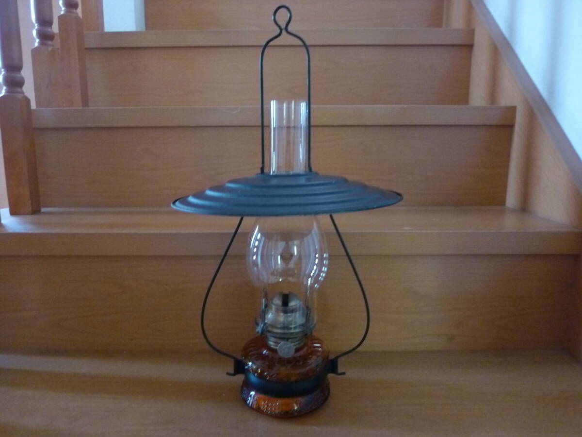 ウランガラス オイルランプ アルミ傘 大正ロマン 昭和アンティークレトロ