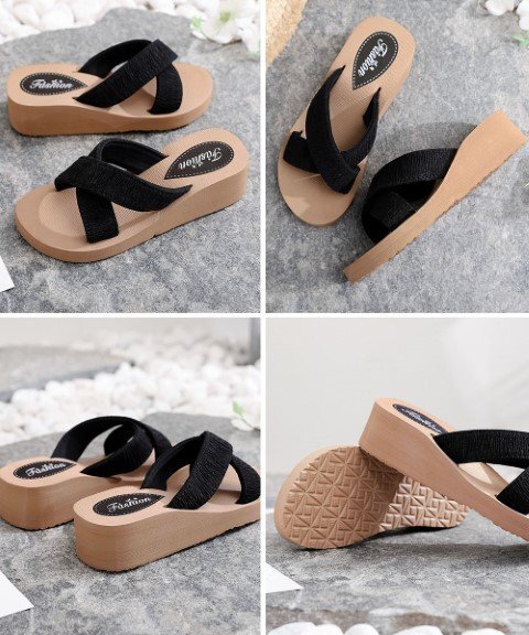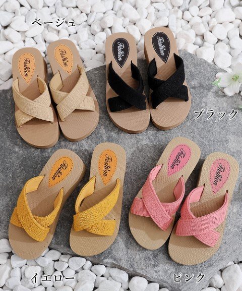 太めのクロスアッパーは安定感があり、長時間の着用も安心の厚底サンダル