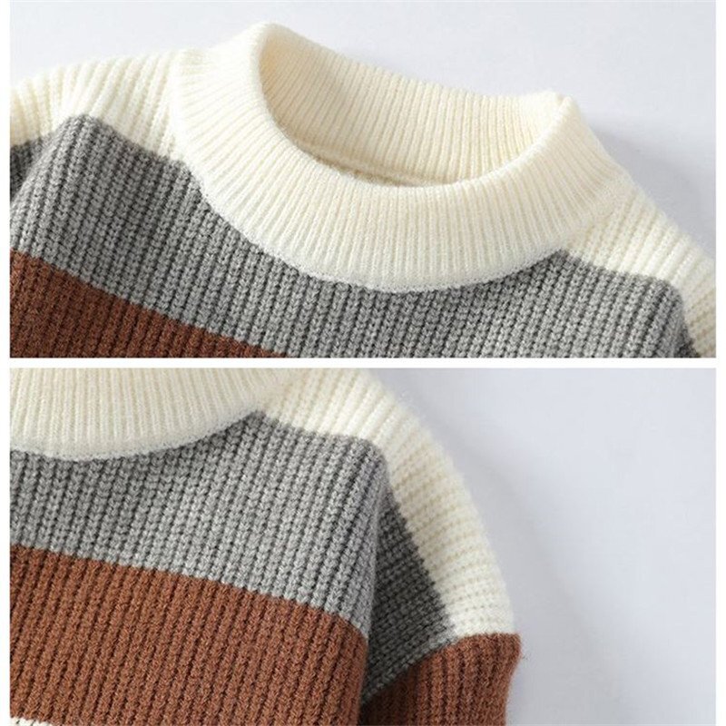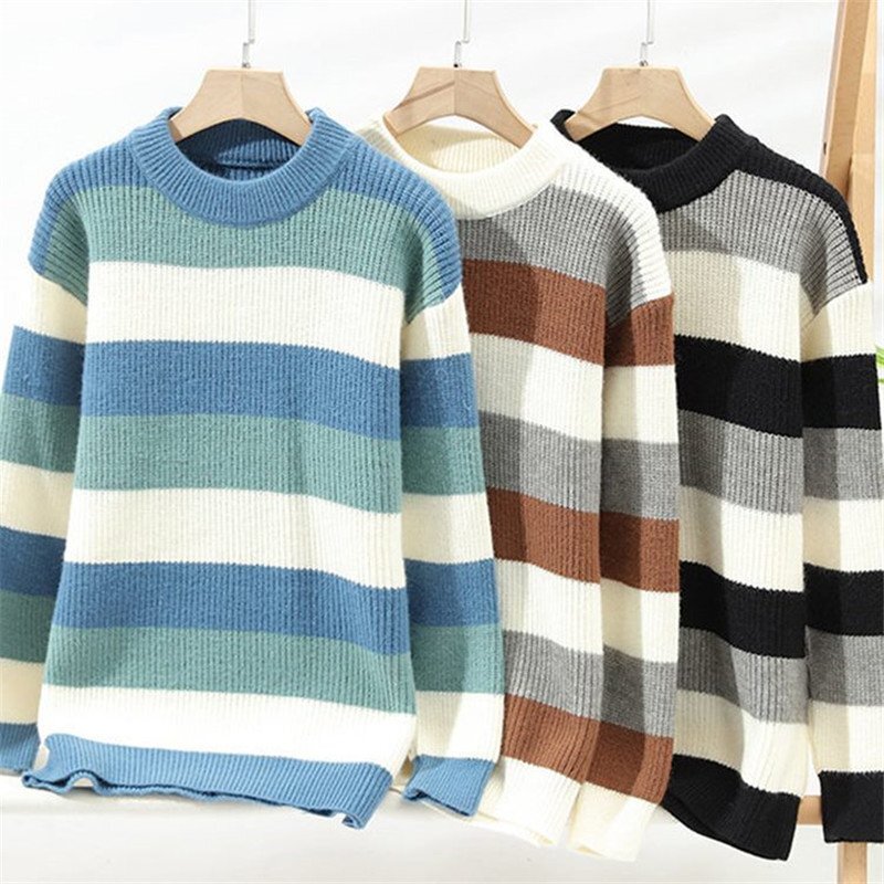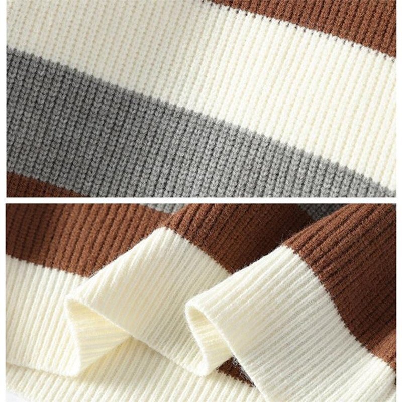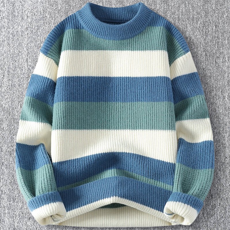 新品 DCKMANY ウール混 ニットセーター メンズ ラウンドネック トップス  ストライプ 3配色 暖かい 編み プルオーバー 厚手 秋冬 プルオーバー トップス 青 T5207-XL