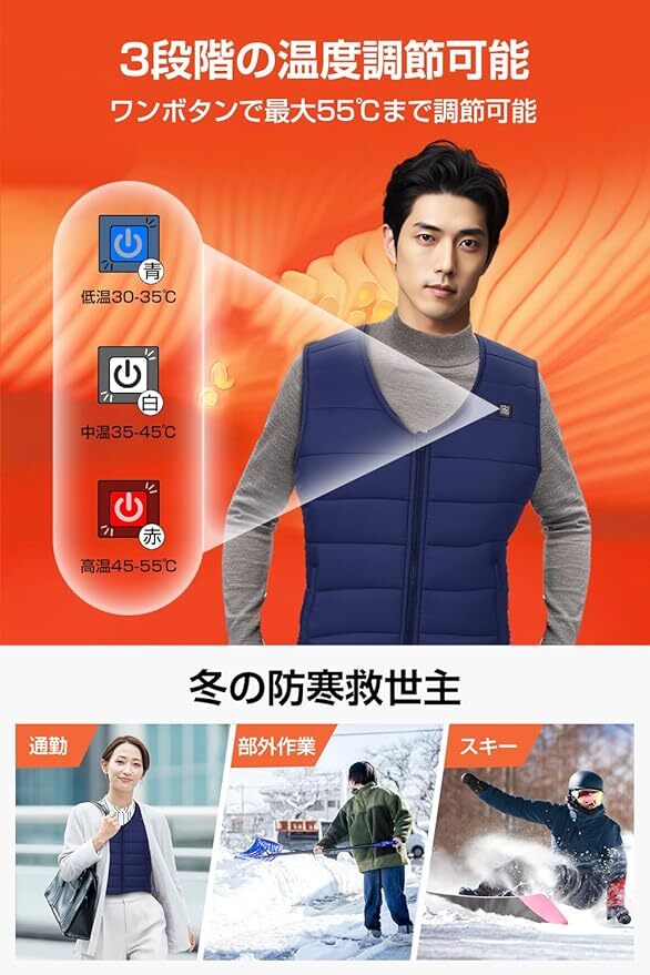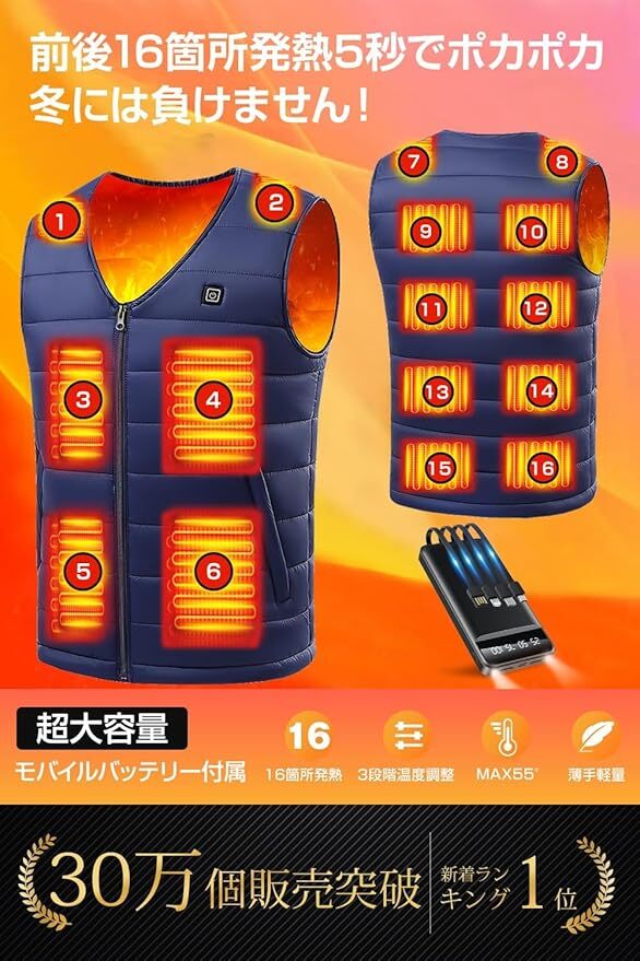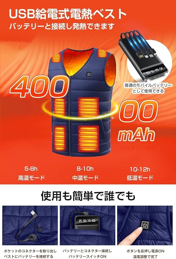 XLサイズ ブルー色 Forticu 電熱ベスト 加熱 【16箇所発熱・超速暖】 ヒーターベスト 3段階温度調整 USB給電式