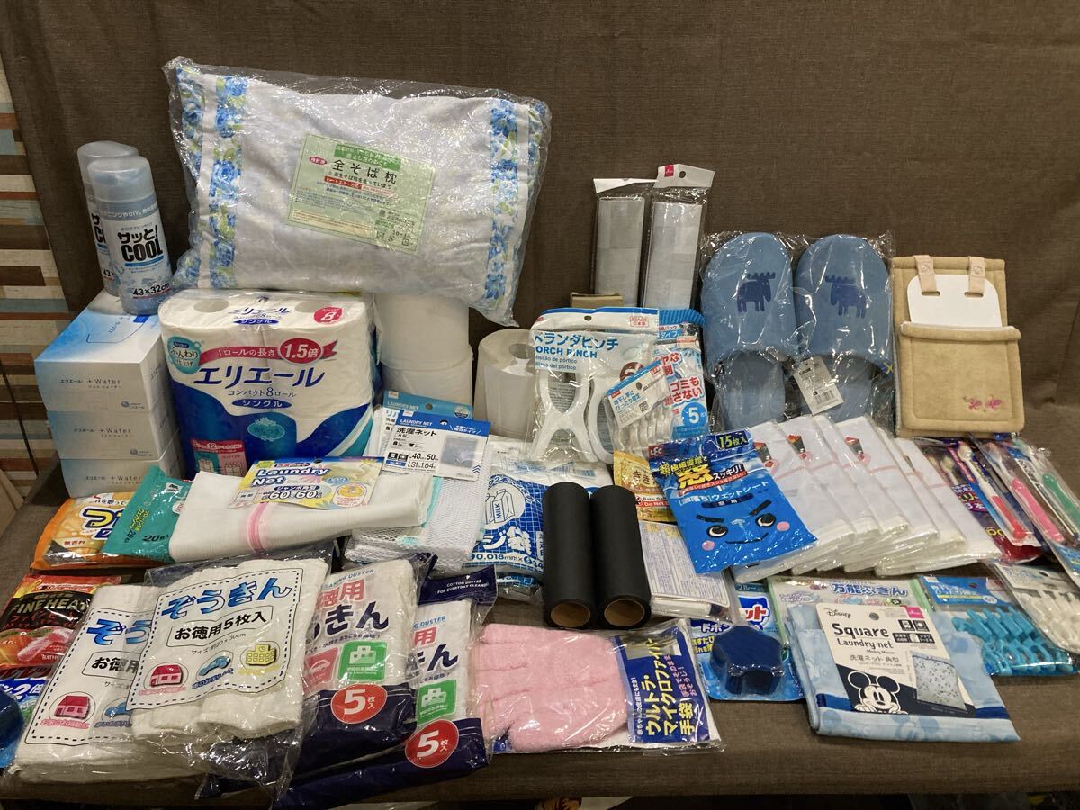 98【日用品まとめ】全そば枕 タオル 歯ブラシ ピンチ レジ袋 スリッパ 洗濯ネット ぞうきん 等 あ