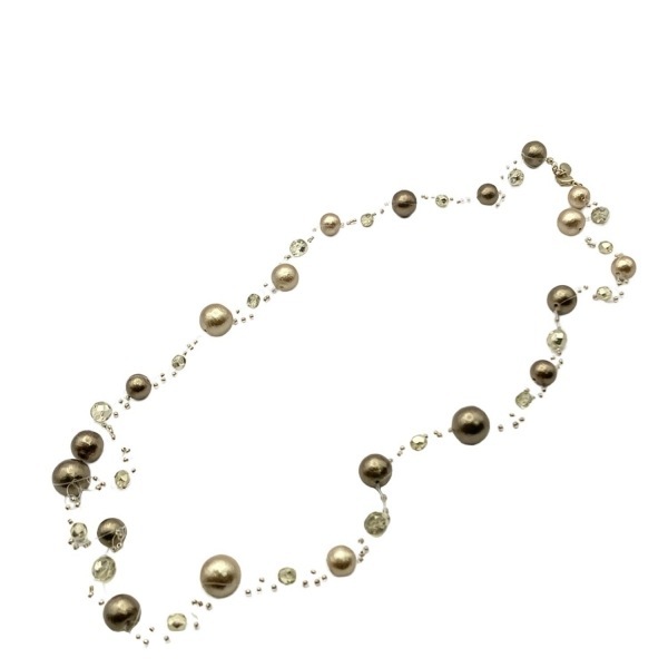アンテプリマ ANTEPRIMA ネックレス - コットン クリア×ブロンズ×ピンクベージュ ビーズ 美品 アクセサリー(首)