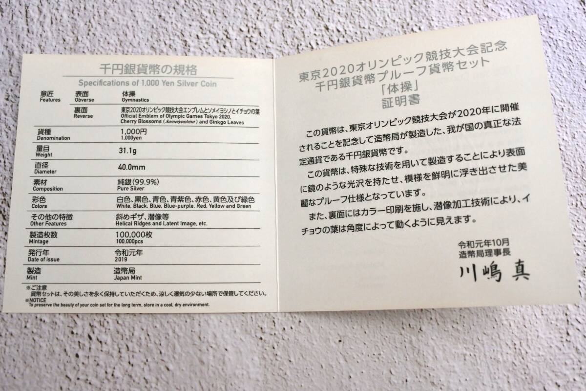 「体操」東京2020オリンピック競技大会記念1000円銀貨幣 31.1g