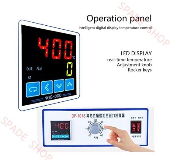 【正確な表示と操作】このラボスターラーにはLEDディスプレイが搭載されており、正確な温度設定が表示されます。ノブを回すことで、回転速度を非常に正確に調整できます。