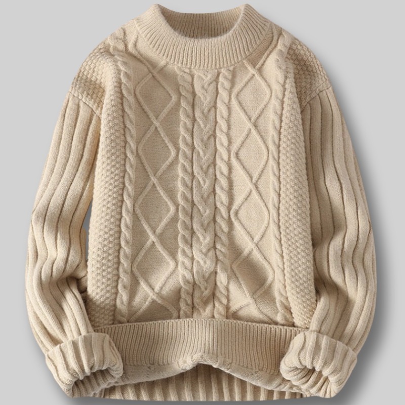 G232-2XL 新品DCKMANY ウール混 ニット ラウンドネック ケーブル編みセーターメンズ 秋冬 厚手 暖かい 長袖 プルオーバー トップス/カーキ