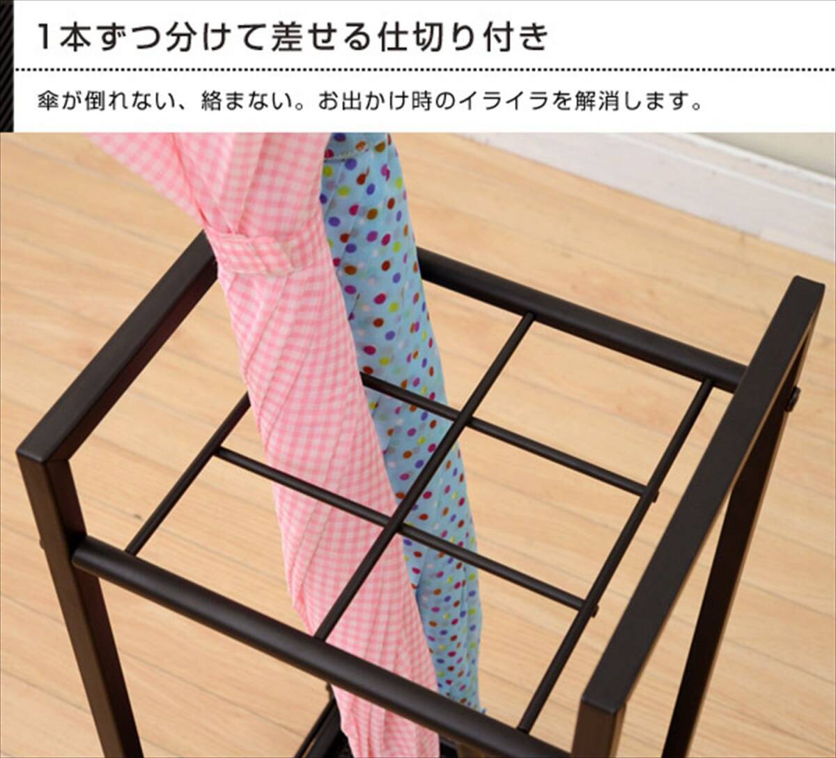 商品紹介 ●組立品です●組立時間:約10-20分●玄関の角にぴったり収まるスリムな傘立て●傘が絡みにくい仕切り付●下部トレーは取り外してお手入れ可能●仕切内寸:幅7 奥行5cm●トレー内寸:幅17.5 奥行き17.5cm●収納目安:6本 より ●玄関の角にぴったり収まるスリムな傘立て ●フレームだけで構成されたシンプルデザインで、玄関をすっきりした印象に ●傘が倒れず絡みにくい仕切り付 ●下部トレーは取り外しが可能、溜まった水もすぐに捨てられお手入れもカンタン ●フレーム表面はサビに強い粉体塗装 ●組立品(組立時間:約10~20分)
