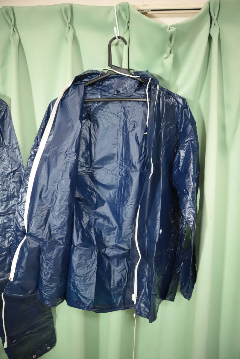 | ☆レトロ 光沢ビニールレインコート合羽上下 ネイビー M☆ |