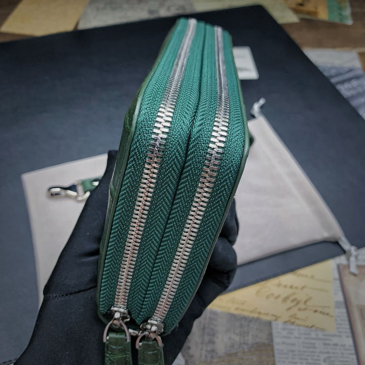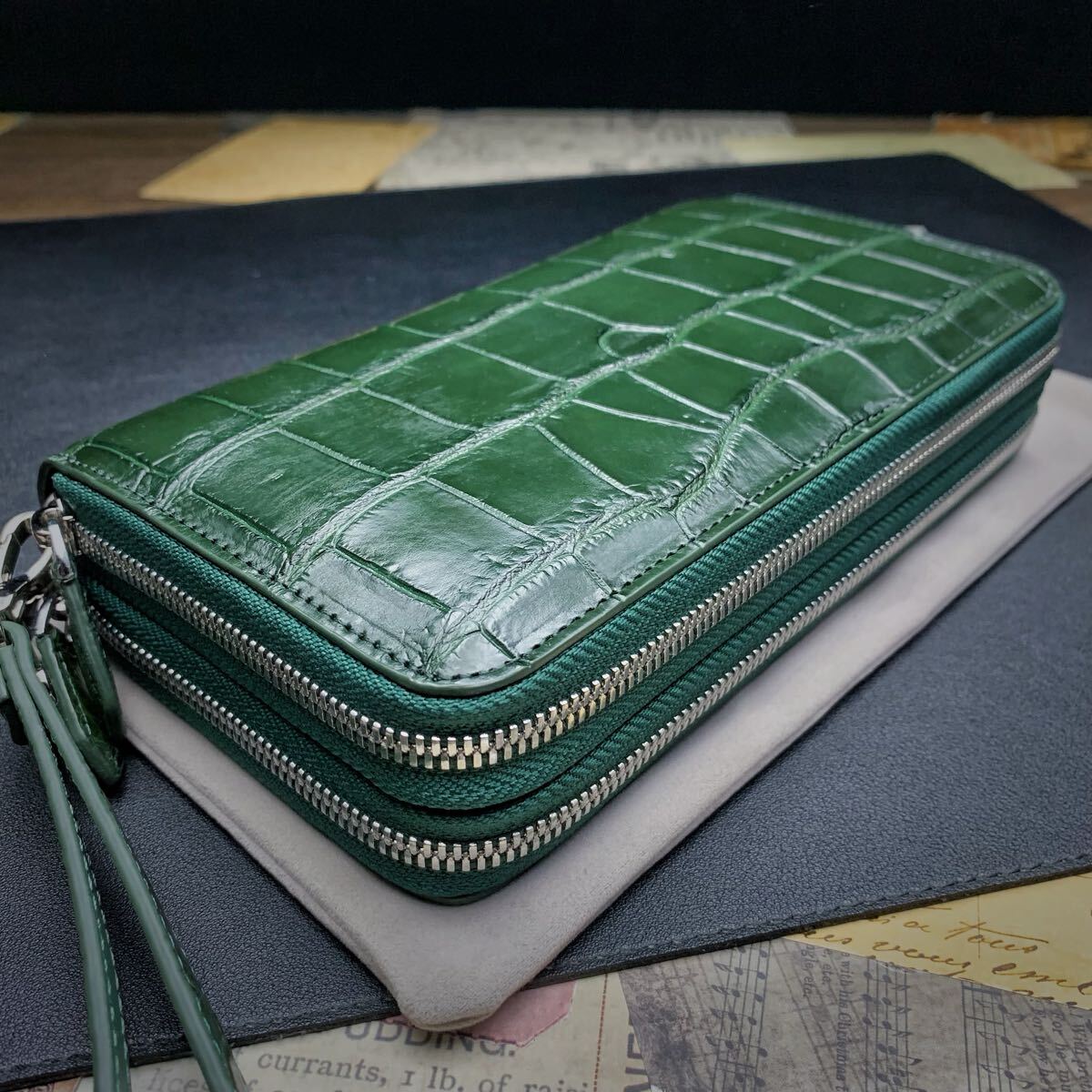 【実物撮影】新品 クロコダイル メンズ 長財布 ラウンドファスナー 未使用 送料無料 腹革 ワニ ダブルファスナー 長財布