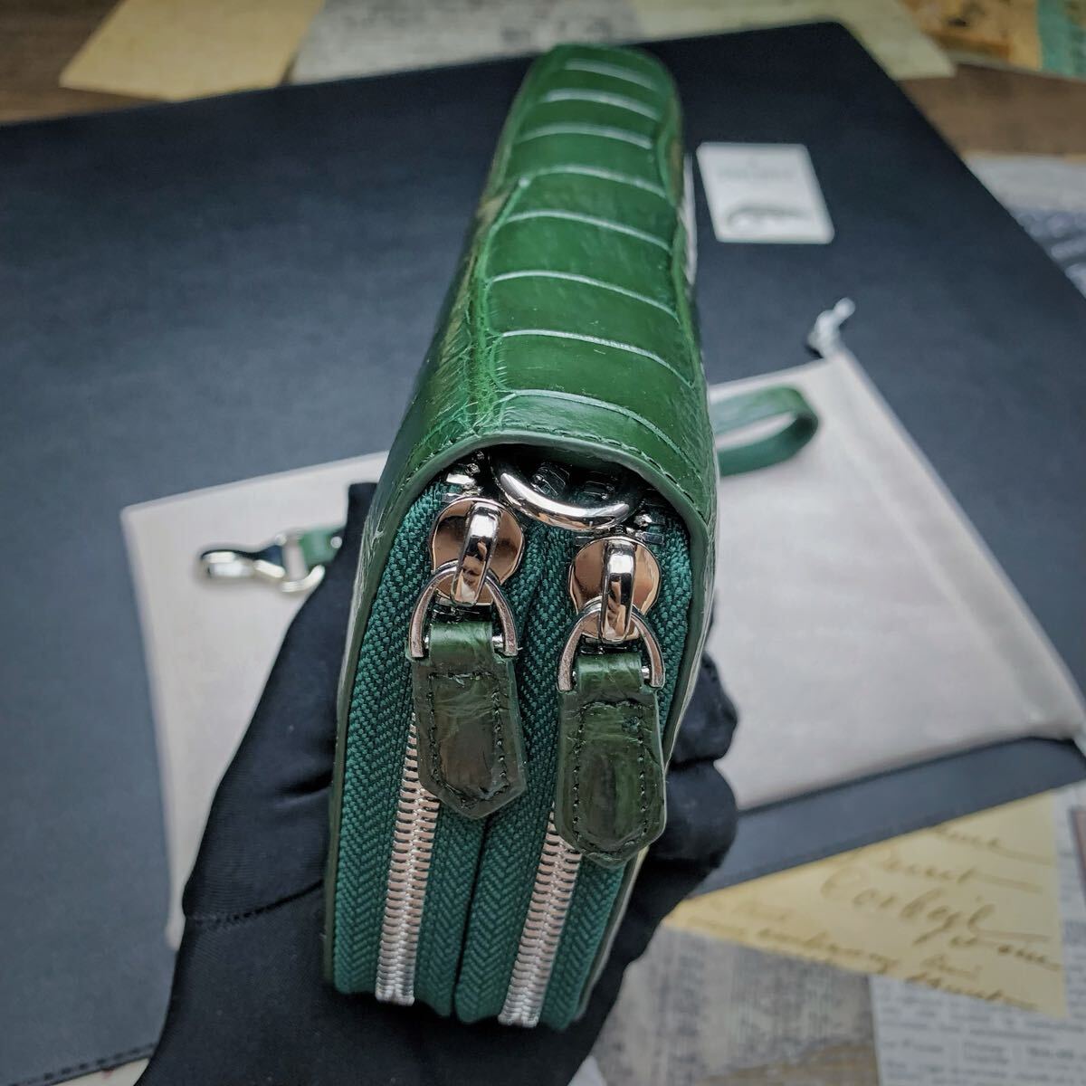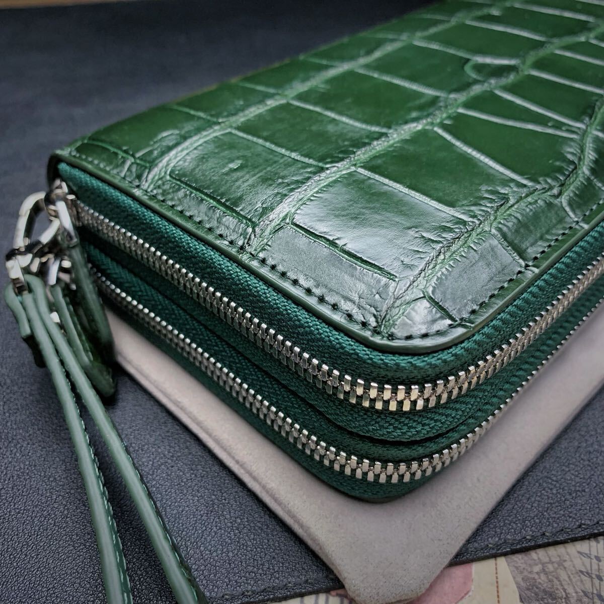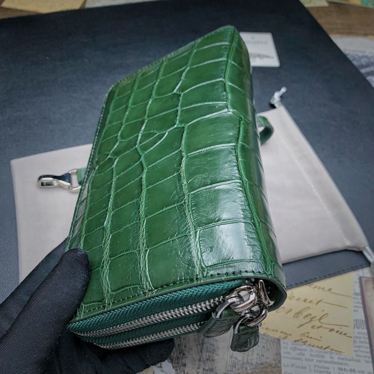 ・クロコダイルと呼ばれている品種のワニ革は人気が高く、独特の模様と凹凸が魅力で、高級ブランド品を中心にクロコダイルが多く使われています。今回はワニ革の代表格である『シャムクロコダイル』のセンターカット背中革のラウンドファスナー財布を出品します。