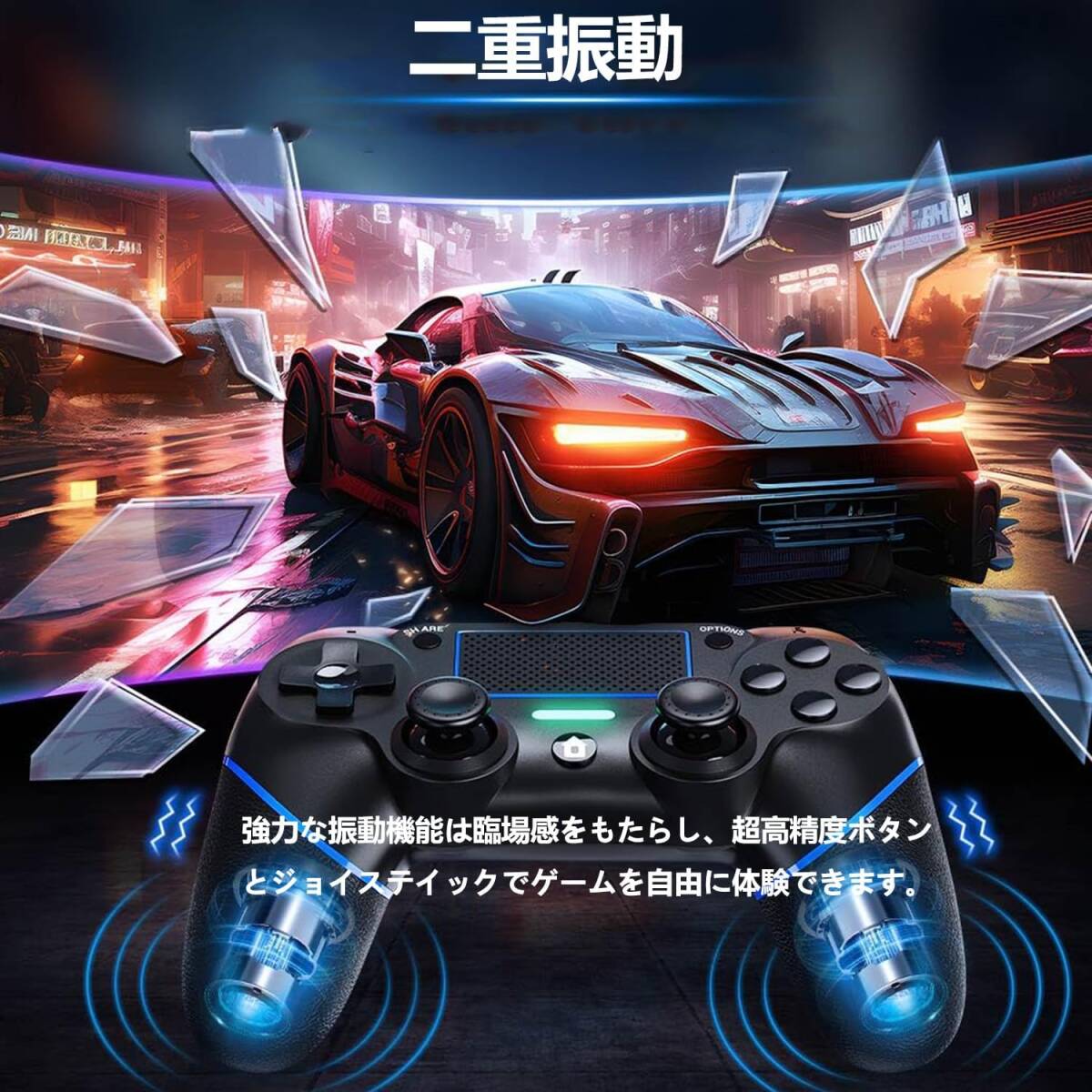 ■【リアルなゲーム体験】P4コントローラには振動機能が備わっていますので、あなたは没入感あふれるものになり、本物のゲーム体験をもたらします。2つの3Dアナログジョイスティックは、360°オールラウンドで正確に操作できます。[共有]ボタンを使用すると、エキサイティングなゲームクリップをいつでもソーシャルネットワークで共有できます。同時に、さまざまな色を表示できるライトバーも備えています。さまざまな色を使用してさまざまなプレーヤーを表すことができ、重要な情報(ゲームキャラクターのライフバリューの減少など)を思い出させるために使用できます。