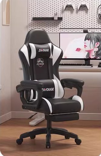 黒色のゲーム用チェア、PCチェア、家庭用リクライニングチェア、快適な長時間座り、人間工学に基づいた椅子、寮用昇降式ライブ放送椅子