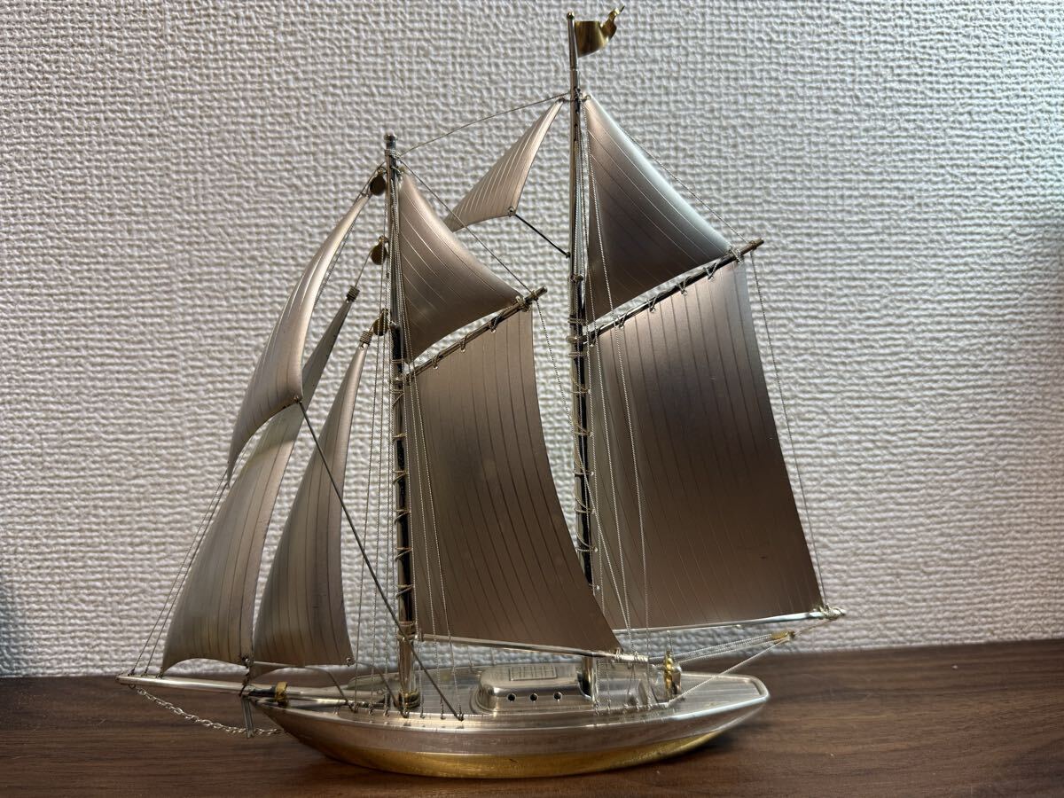 〔 1円スタート 〕銀製品 帆船 ヨット 置物 SILVER970 重量216.3g