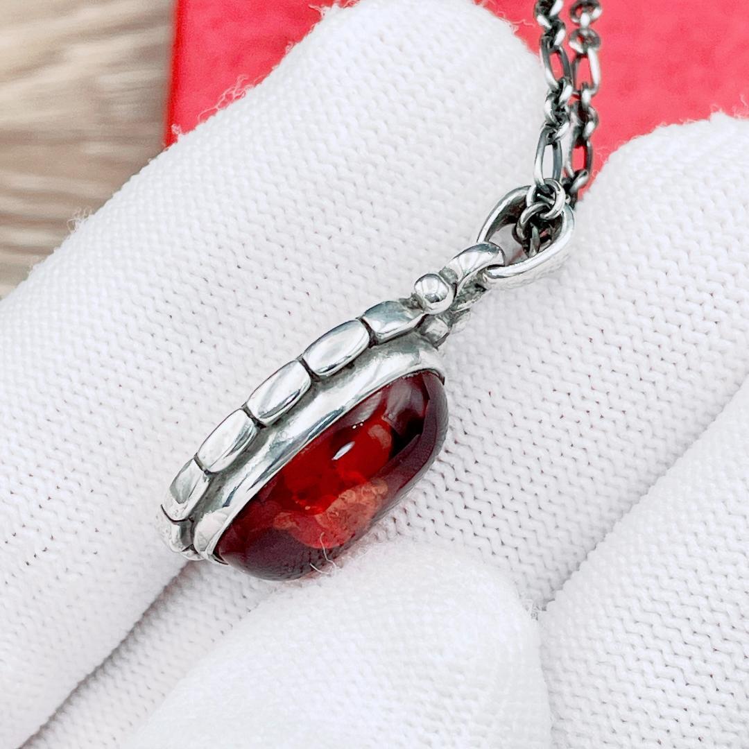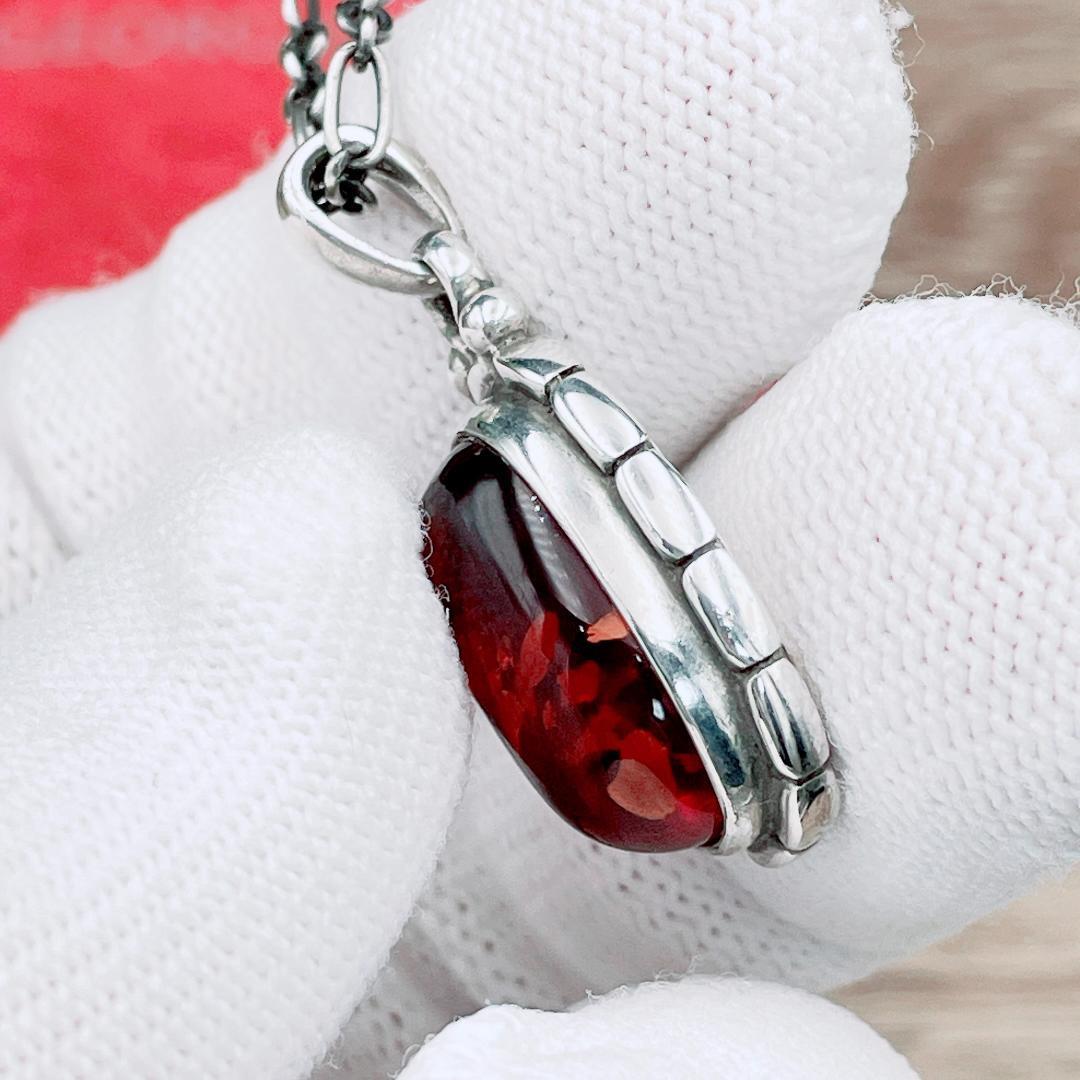【商品名】2001年 イヤー ペンダント ネックレス Ag925 シルバー 11.1g 琥珀 コハク アンバー ブランド