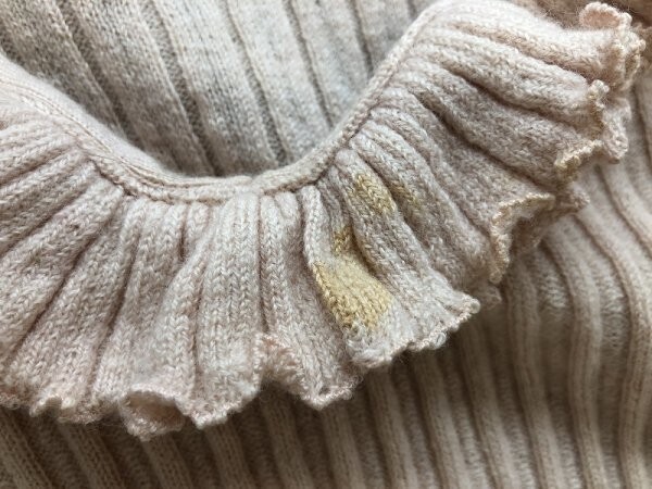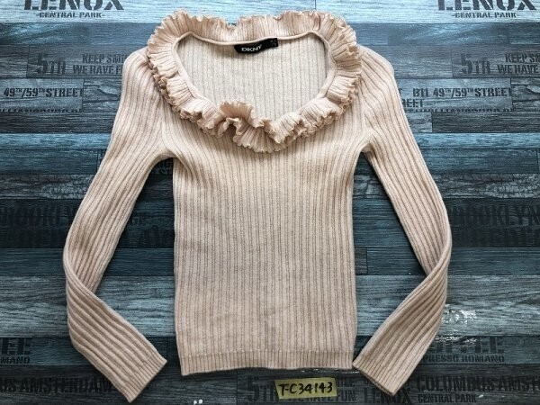 DKNY ダナキャラン レディース フリル ウール リブ ニットソー P/S ペールオレンジ です。