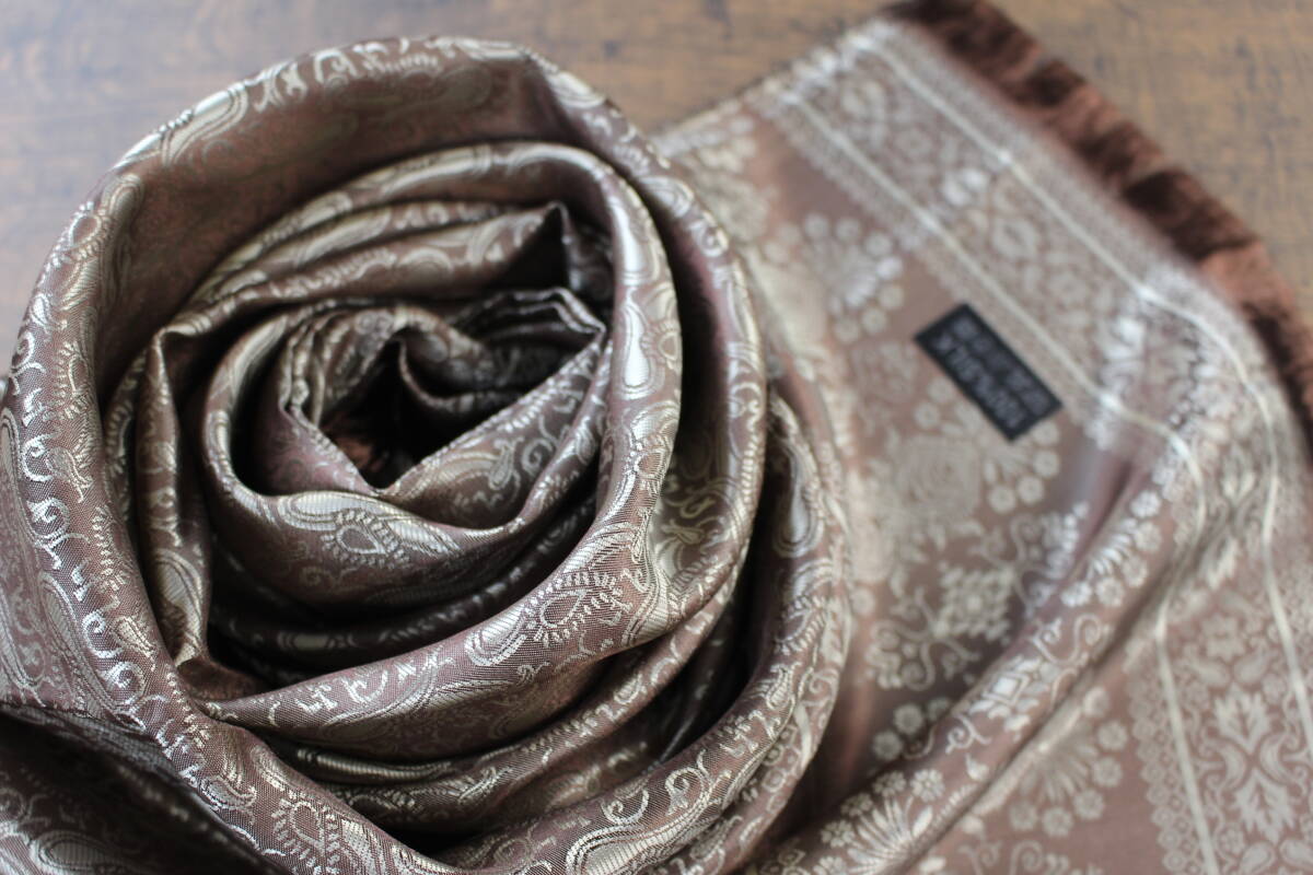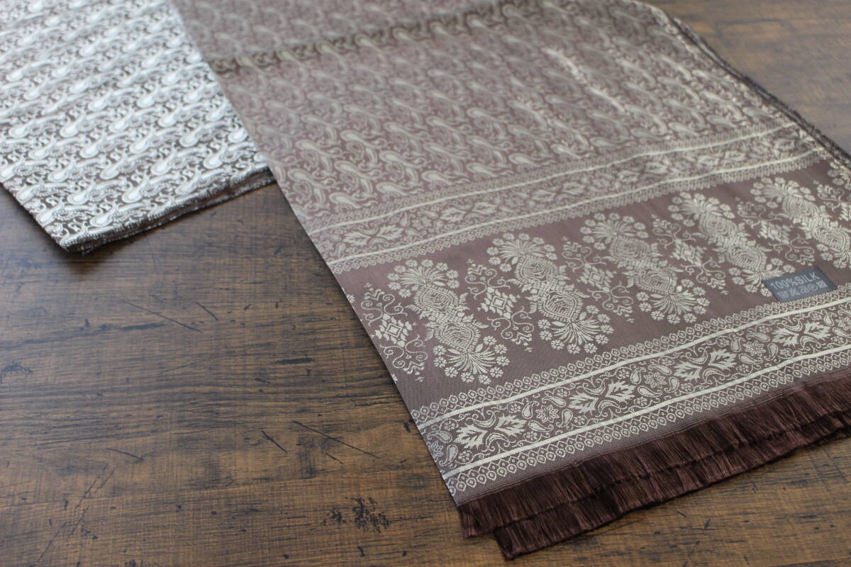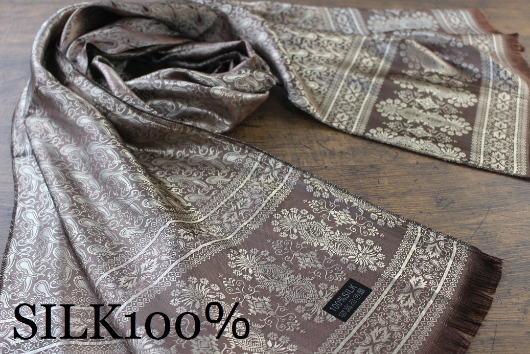 新品【シルク100% SILK】ペイズリー柄 シャインブラウン 茶色 S.BROWN 大判 ストール/スカーフ