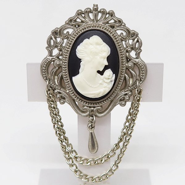DKG★送料無料 BVA704★ ヴィンテージ カメオ風 チェーン付き ブローチ カメオ風ブローチ