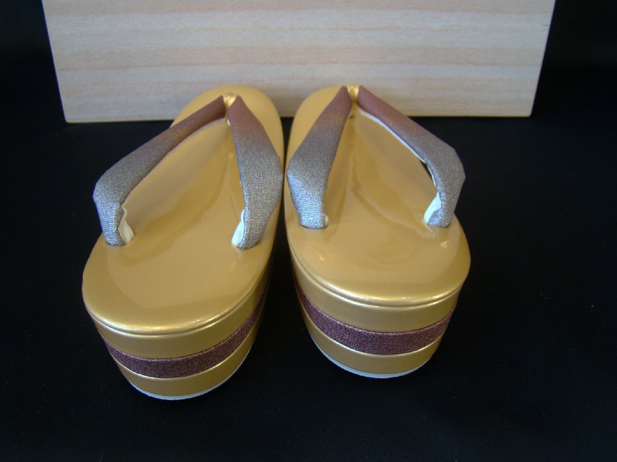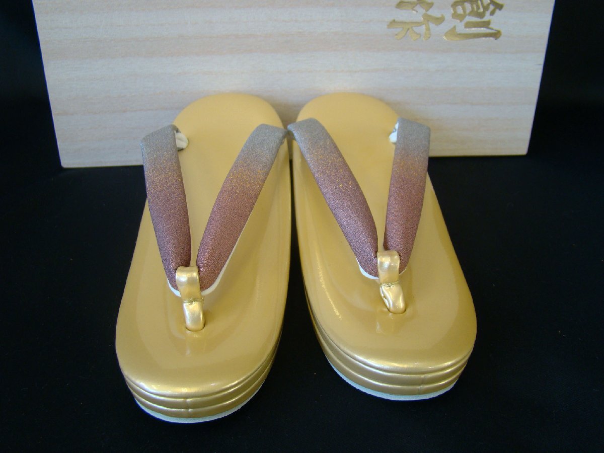 | 商品の説明 | ●新品、未使用。※バッグの裏面に若干のへこみ跡があります。 ●バッグの寸法 横 約20.5cm 高さ(取っ手上部まで)約27cm バッグ部分高さ 約15cm マチ約8.5cm グレー~こしあん色ぼかしに金の花柄。 ●草履寸法 約23.5cm かかとの高さ 約5.0cm 巾 約8.0cm 金の台は金色、鼻緒はバッグと同色。 ※フォーマルの着物を美しく気品で満たす華やかな意匠の 素敵な草履・バッグです♪♪ 飽きのこない柄行ですので末永くご愛用頂けるセットです★ 訪問着等合わせてご使用頂けます☆☆ 30代~幅広い年代の着物通の貴女に最適です♪♪ ※ハンドメイドの為、台地や鼻緒などに擦り傷や接着剤の付着など極わずかですが 見られる場合がございます。この商品に限らずハンドメイド製品に 見られるものですので予めご了承下さいませ。 |