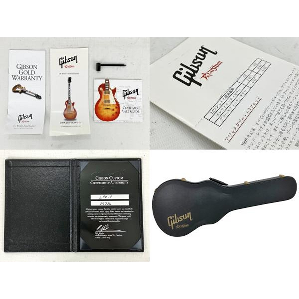 | ◆Gibson Custom Shop 1957 Les Paul Standard Reissue (LPR-7) 2009年製が入荷いたしました! ロックギターの歴史における重要な転換点、 1957年仕様をギブソン・カスタムショップが忠実に再現した「LPR-7」。 2009年製ヒストリック・コレクションの一本です。 レスポールの象徴である「ゴールドトップ」フィニッシュと、 この年から搭載されたPAFスタイル・ハムバッカーが特徴。 サウンドはウォームでリッチ、そして圧倒的なサステインを誇ります。 特筆すべきは「ベースボールバット」とも称される極太のネックグリップ。 この太さが弦振動を余すことなくボディに伝え、ロックの黎明期を彷彿とさせる 図太く甘いトーンを生み出します。 ヴィンテージの再現度が高まった時期の、王道レスポール・サウンドを体現するモデルです。 【初期動作保証】 ReReでは商品説明や画像では確認できない不備や破損が見られた場合は、 商品到着(お引渡し)日を含んだ7日以内に取引メッセージよりご連絡いただけますと 速やかに返品返金対応致しますので、安心してご購入頂けます。 【状態について】 多少の使用感のみで、比較的コンディションの良い商品です! 木部、アッセンブリに特に問題ございません。 ボディ側面に打痕跡がございます。 ヘッド上部角にやや塗装欠けがございます。 ※ボディ表面下部に若干黒く変色してる箇所があります。(4枚目左上参照) ※つまみにヒビが見受けられます。 ※ボディのバインディングに浮きが見受けられます。(5枚目上段参照) 製造年はシリアルより判断しております。 フレット残:80%程度残 ネックの反り:順反り 弦高(12フレット):1弦:約2mm 6弦:約2mm 重量:3.9kg 【動作について】 各ポジションでの音詰り、ビビリなどございません。 ピックアップ出力確認済み 【付属品】 ハードケース 鍵:有(鍵穴はありますが、鍵は欠品しております) 説明書類 工具類 その他画像参照 ※付属品に関しては画像にてご確認いただけるものが全てとなっております。 ※一部商品は在庫自動連携しているため、ご購入後に在庫がない場合がございます。 ご了承の上、ご購入くださいませ。 |