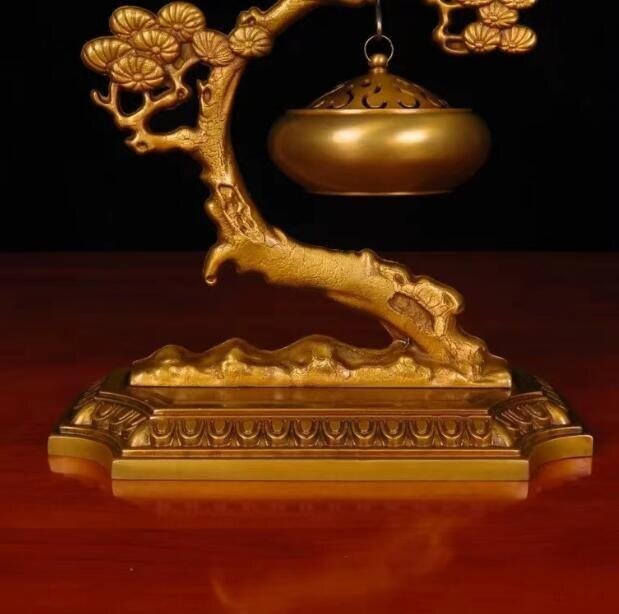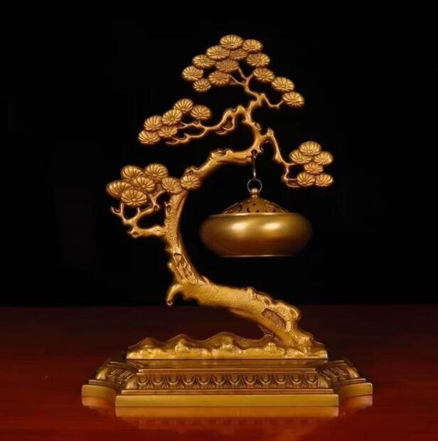 【黄銅製・迎客松香炉】~縁起の良い松をかたどった、和と静寂の薫る香炉~