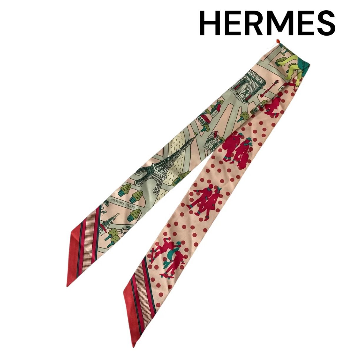 エルメス HERMES ツイリー 新パリの恋人たち スカーフ シルク ピンク系 レディース 5D867
