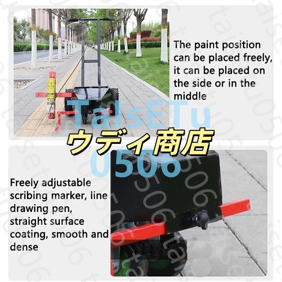 商品説明 商品の説明 ホイールトランスファーラインマーキングマシン、頑丈なホイールは地形をスムーズに転がり、迅速に適用できます。駐車場、道路、小道などに最適です。>>> 仕様:名前: ペイントスクライビングカー材質:鉄一次鋳造、外側塗装スプレー幅: 調整可能な4-18CM
