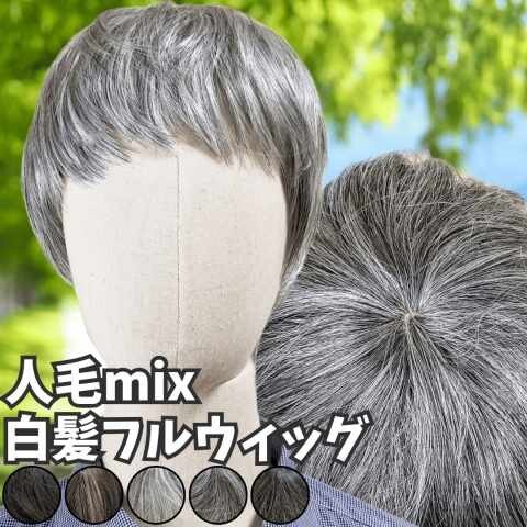 ウィッグ 白髪 白髪かつら 医療用 フルウィッグ ショート 全頭かつら グレイヘア 高齢者 シニア ウルフ ボブ 耐熱 レディース 人毛mix ミセス つむじ 頭頂部 シルバー 女装 コスプレ ストレート 帽子ウィッグ ズレにくい 中高年 軽量