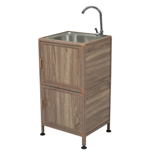 【囲い付きで便利】屋外 流し台 ステンレス W46×D35×H108cm ガーデンシンク 作業台 キッチン 台所 屋外 簡易 シンク 庭 【木目調 】