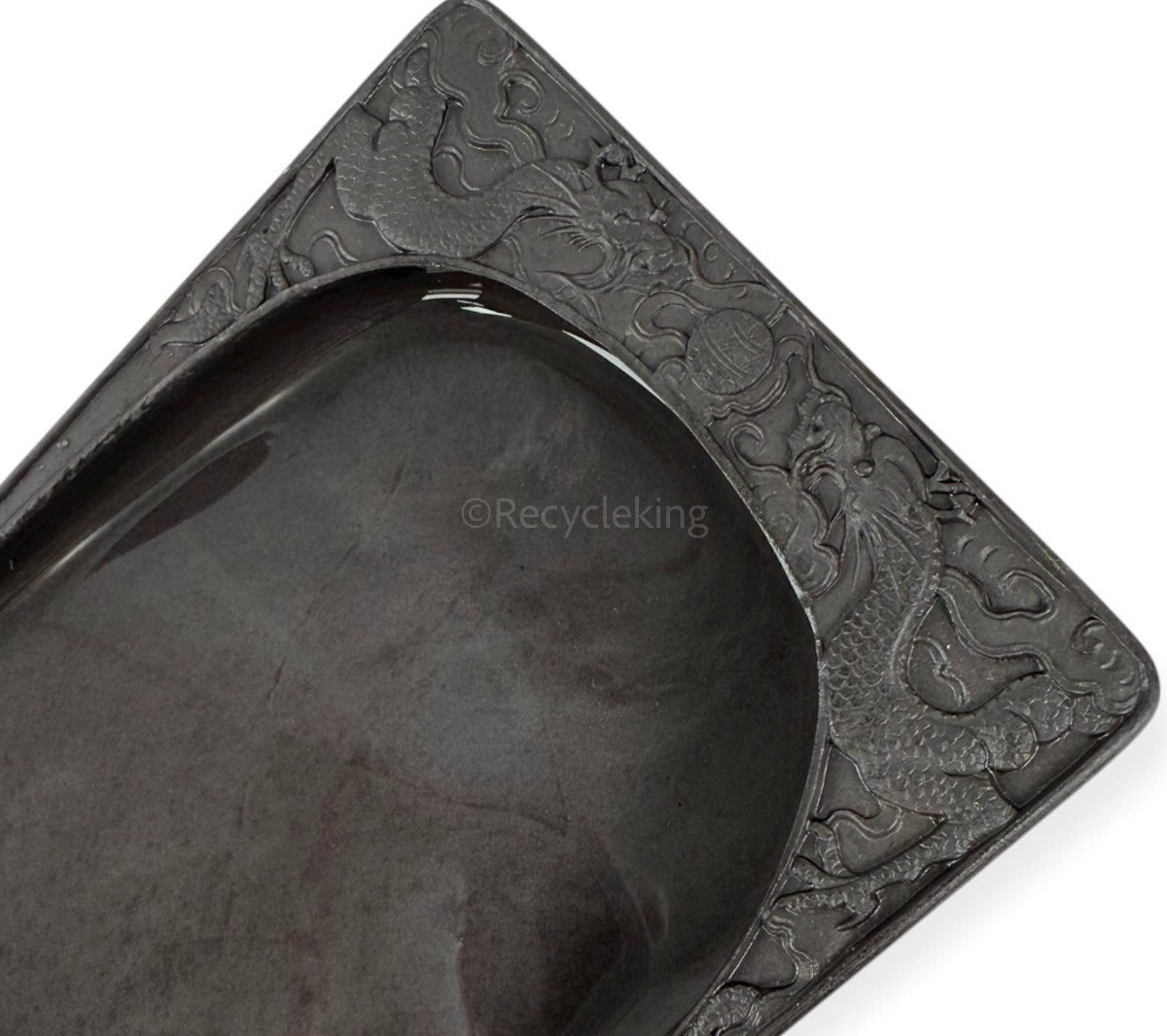 中国 端石 双龍刻硯 唐木硯箱入 古硯 文物 文房具 書道具 すずり 20251102-31