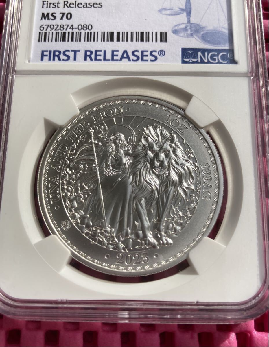 NGC鑑定でMS70の最高評価を受けたものであり、かつ青字ラベルのFirst Releasesです。