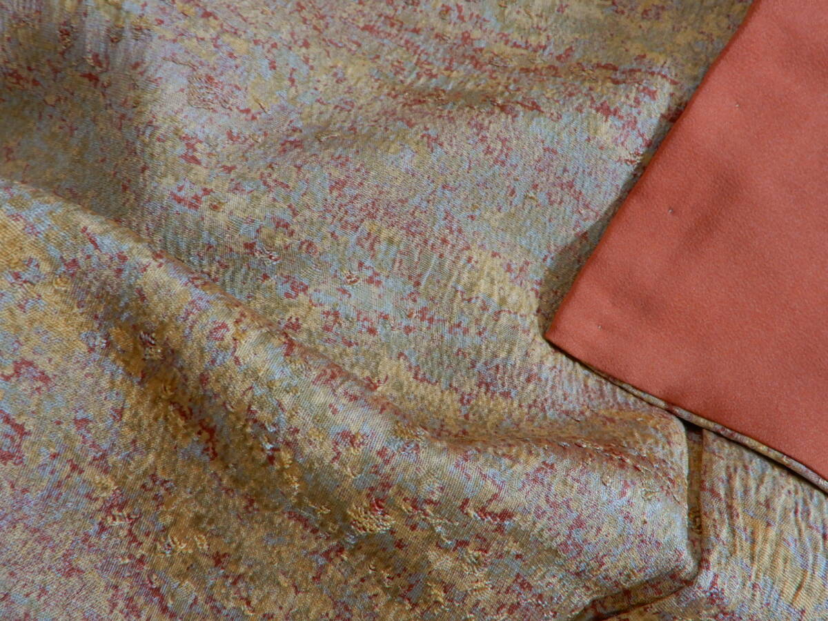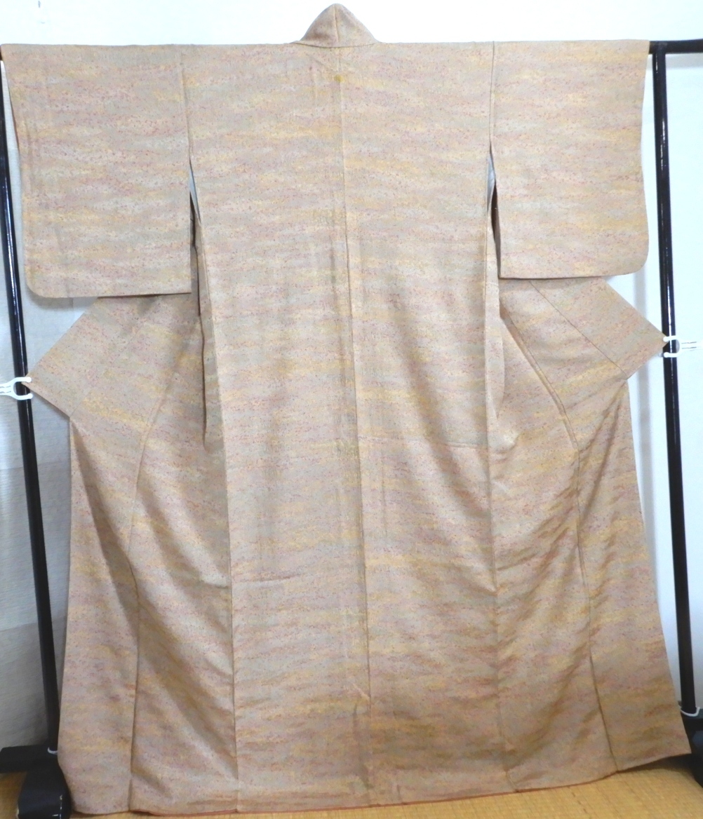 <銀の斧>正絹・小紋袷着物・陶彩染め加藤唐九郎・1ツ紋・刺繍紋・ふくれ織