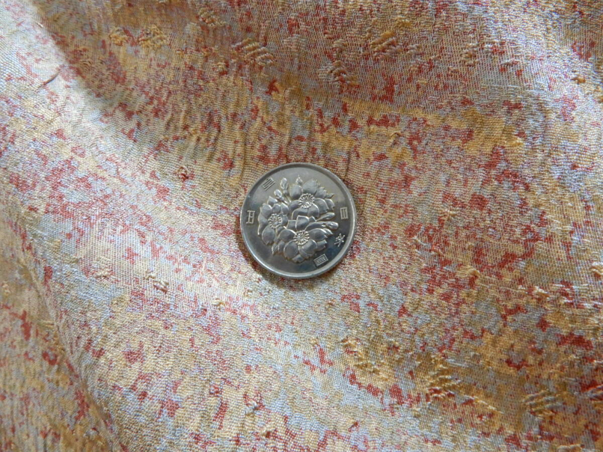 ふくれ織で一ツ紋です。紋は刺繍紋です。