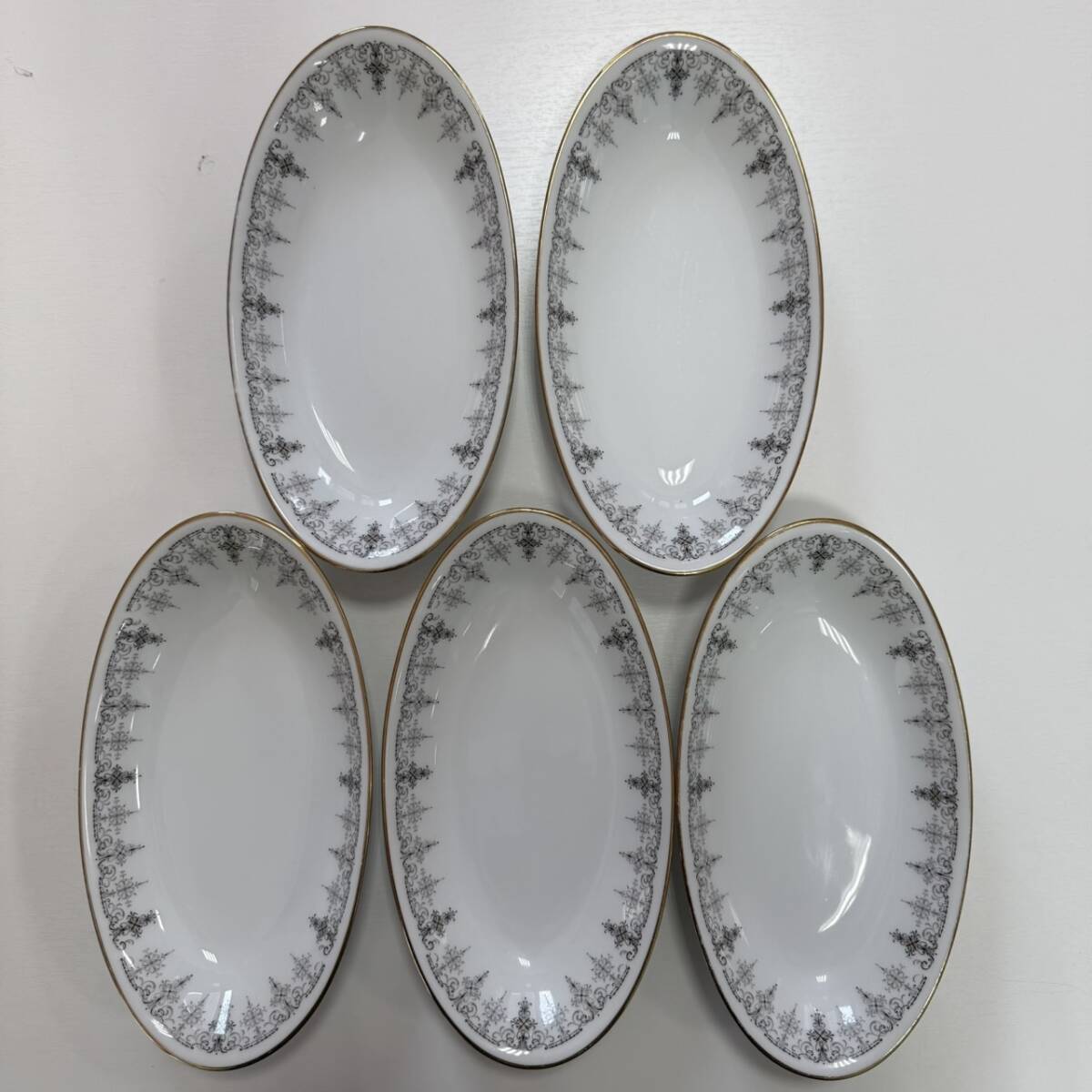 | 【9556-17】Noritake ノリタケ シルバーゲート オーバルプレート 中皿 楕円形 5枚セット | ||