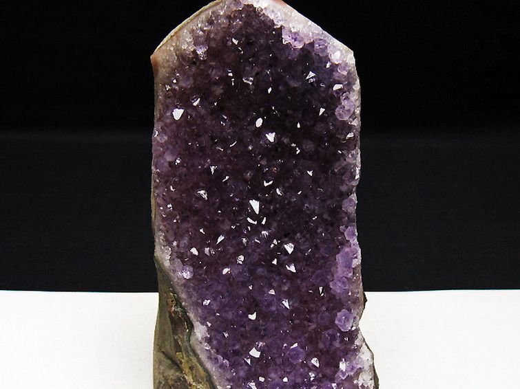 | ■商品名: ウルグアイ産ファントムアメジストクラスター ■商品ID: T614-8876 ■商品重量:約 345g ■商品サイズ: 高約:115mm 横約:60mm 厚約:60mm 【アメジストクォーツ(紫水晶)】 アメジストは鉄分によって紫色に発色した水晶の一種です。 名称はギリシャ語で酒の意味のmethyと否定辞のa、つまり「酒に酔わない」「この石でできた盃で酒を飲めば悪酔いしない」に由来するとされています。 「酒に酔わない」と言われる通り、アメジストは体調面への作用が大きく、血液を浄化して解毒、解熱作用を高め皮膚病の治療や不眠を解消するのにも用いられたと言われています。 アメジストは真実の愛を導く愛の守護石とも呼ばれ恋愛運UPの石としても広く知られています。 理想的な出会いをもたらす効果や持ち主に美や調和を与え、セクシーな魅力を引き出すとのことですので恋愛成就のお守りとしても最適といえるでしょう。 また、くよくよしたり傷ついたりしている時には癒し、目前の困難を乗り越えていけるように精神を強くするヒーリング効果も期待できます。 不眠にも効果があるとされていますので、ストレスを抱えている人にもおすすめの石です。 ⇒ アメジストをもっと詳しく ◆ワンポイント情報 アメジストは産地によって結晶や色味の傾向が変わります。 例えばブラジル産は結晶が大きめだが色味は少し薄め、ウルグアイ産は結晶は小さく細かいが色味は濃紫の傾向、メキシコ産は細長い結晶でライラックの様な明るく透明感のある紫など特徴が異なります。 産地による好みが人によって分かれるのもアメジストならではと言えるでしょう。 |