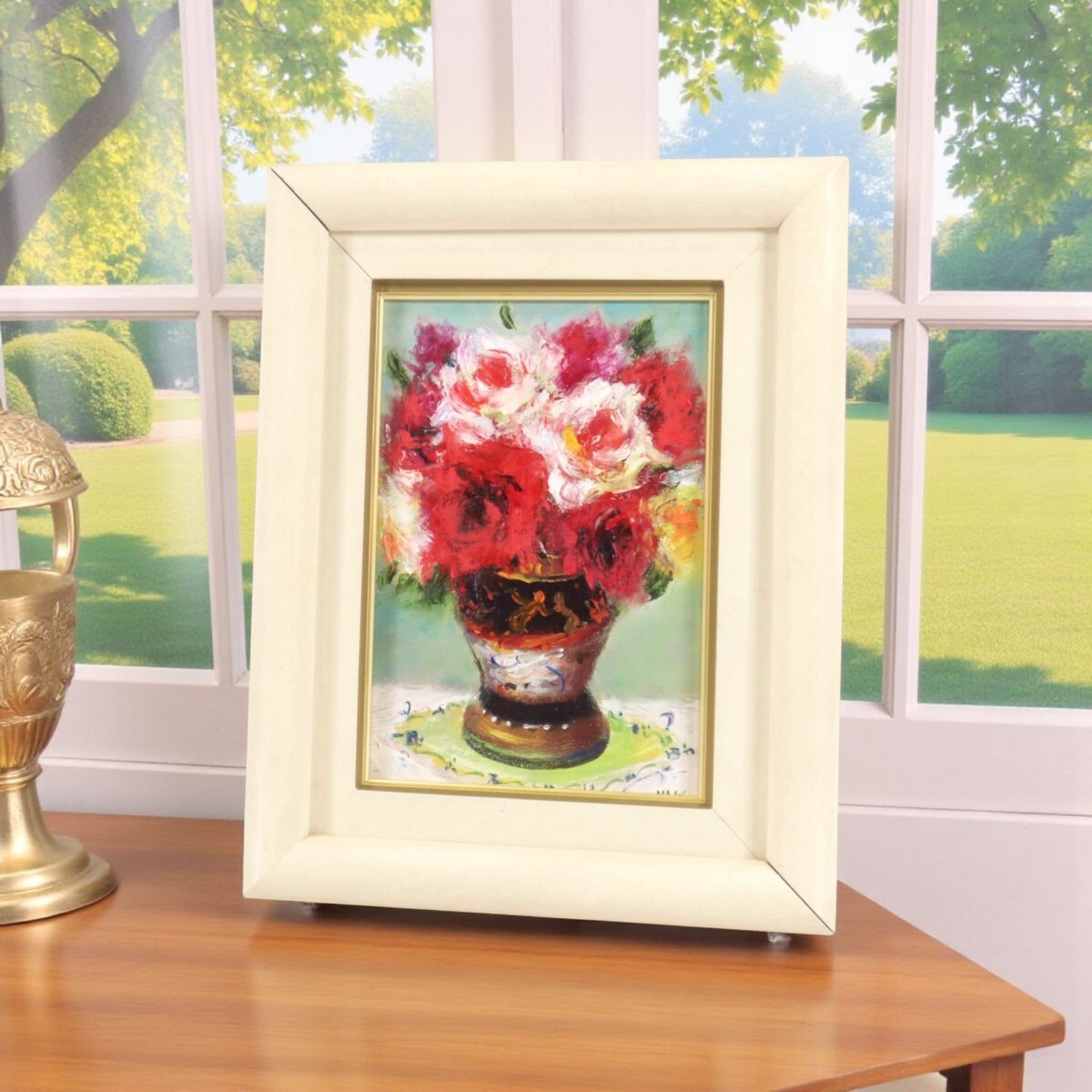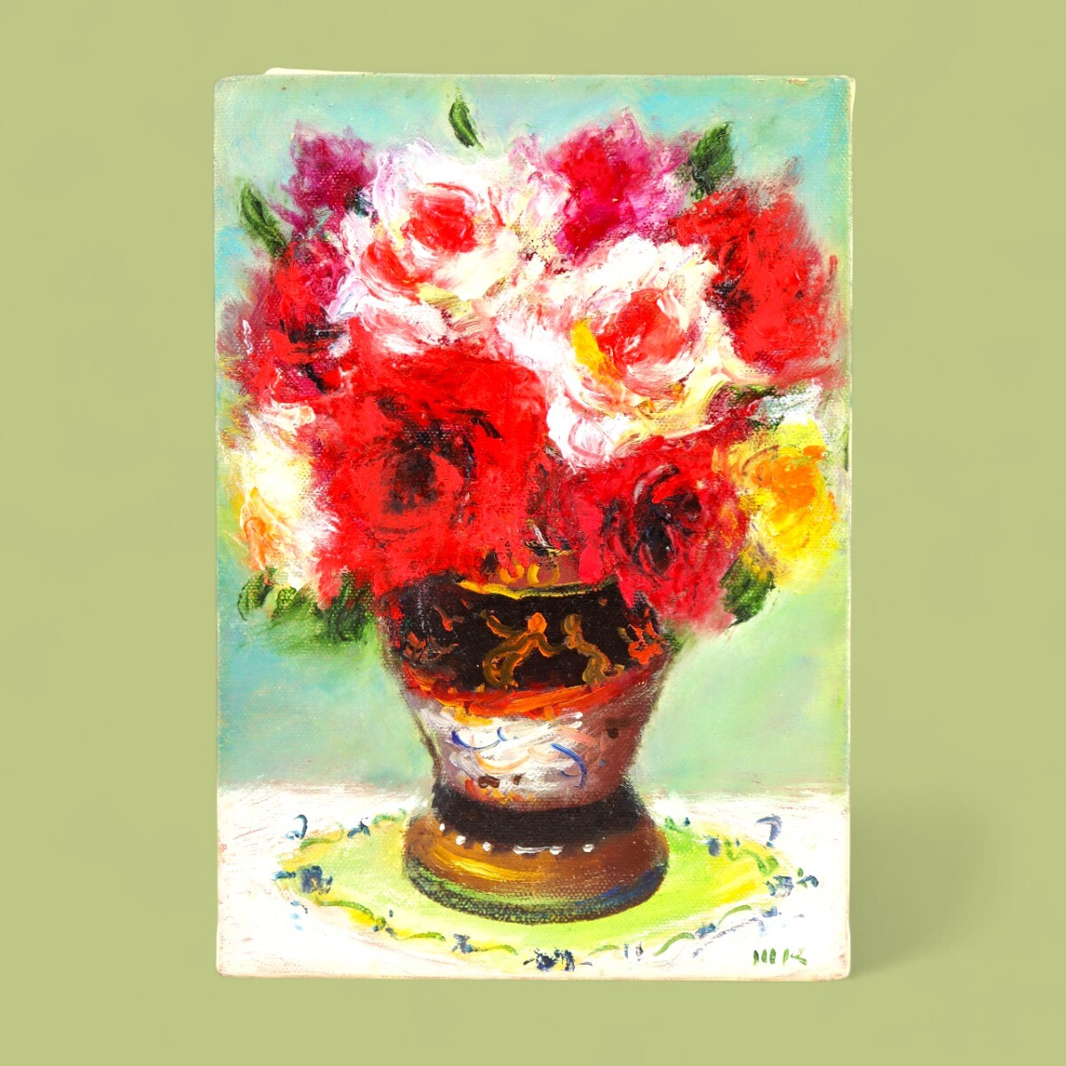 真作 小林昌郎 油彩「ばら」画寸 SM 東京都出身 白日会会員 伊藤清永に師事 優雅な曲線と力強いフォルム成熟した魅力と芳しい香放つ 11693