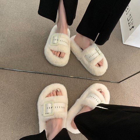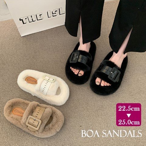 ・もこもこのボア素材が足元にボリュームを満たし可愛らしい印象です。