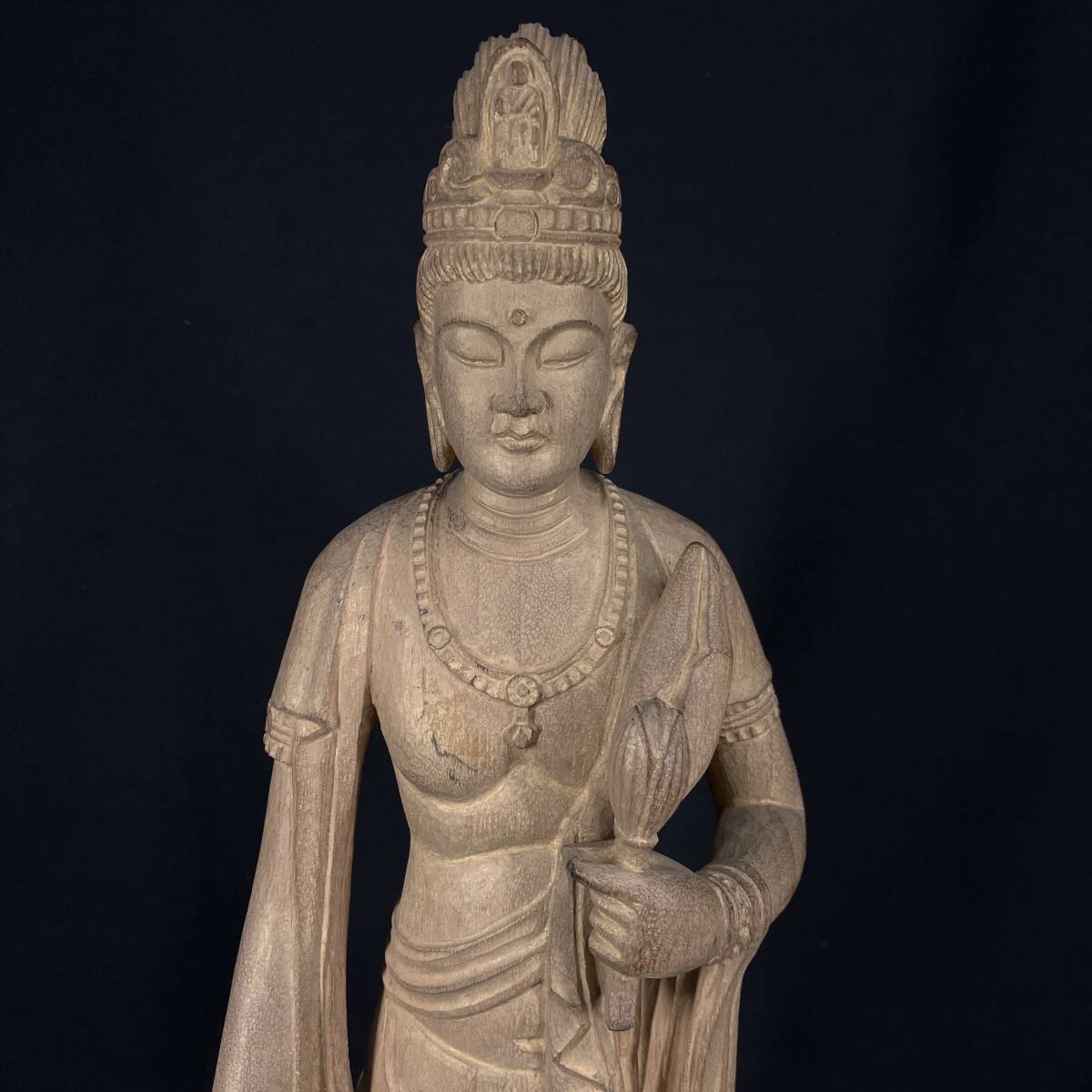 磯尾柏里 聖観世音菩薩 木彫観音立像 木彫 仏像  蔵出し品 807