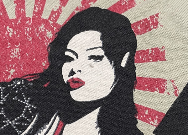 一見実写のバイクかと見間違うほど細部まで細かく描かれたバイクに定番の姉御をチョイスしたデザイン。
