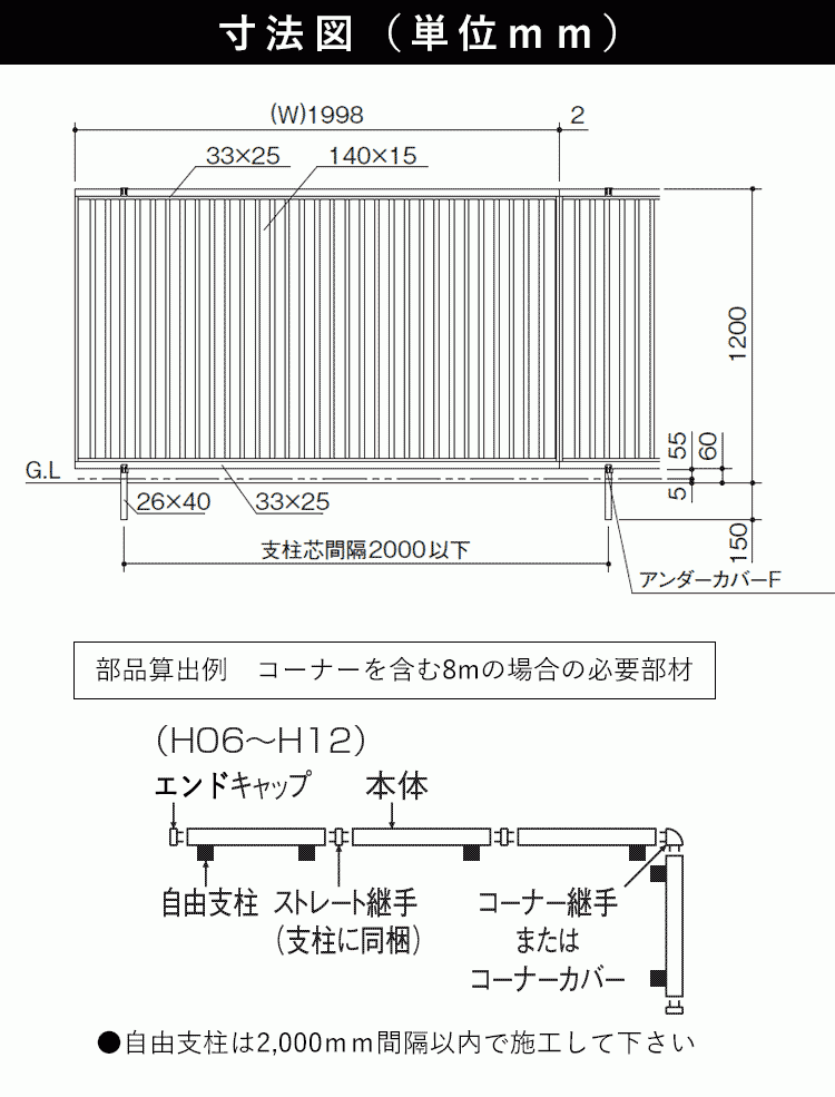 縦ルーバーフェンス用 端部カバー(本体を切断する際に使用します)